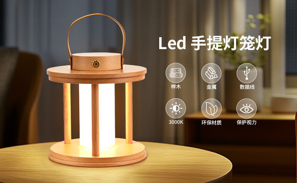 • 휴대용 나무 케이지 램프 충전식 버전 [랜턴 종이 없음]