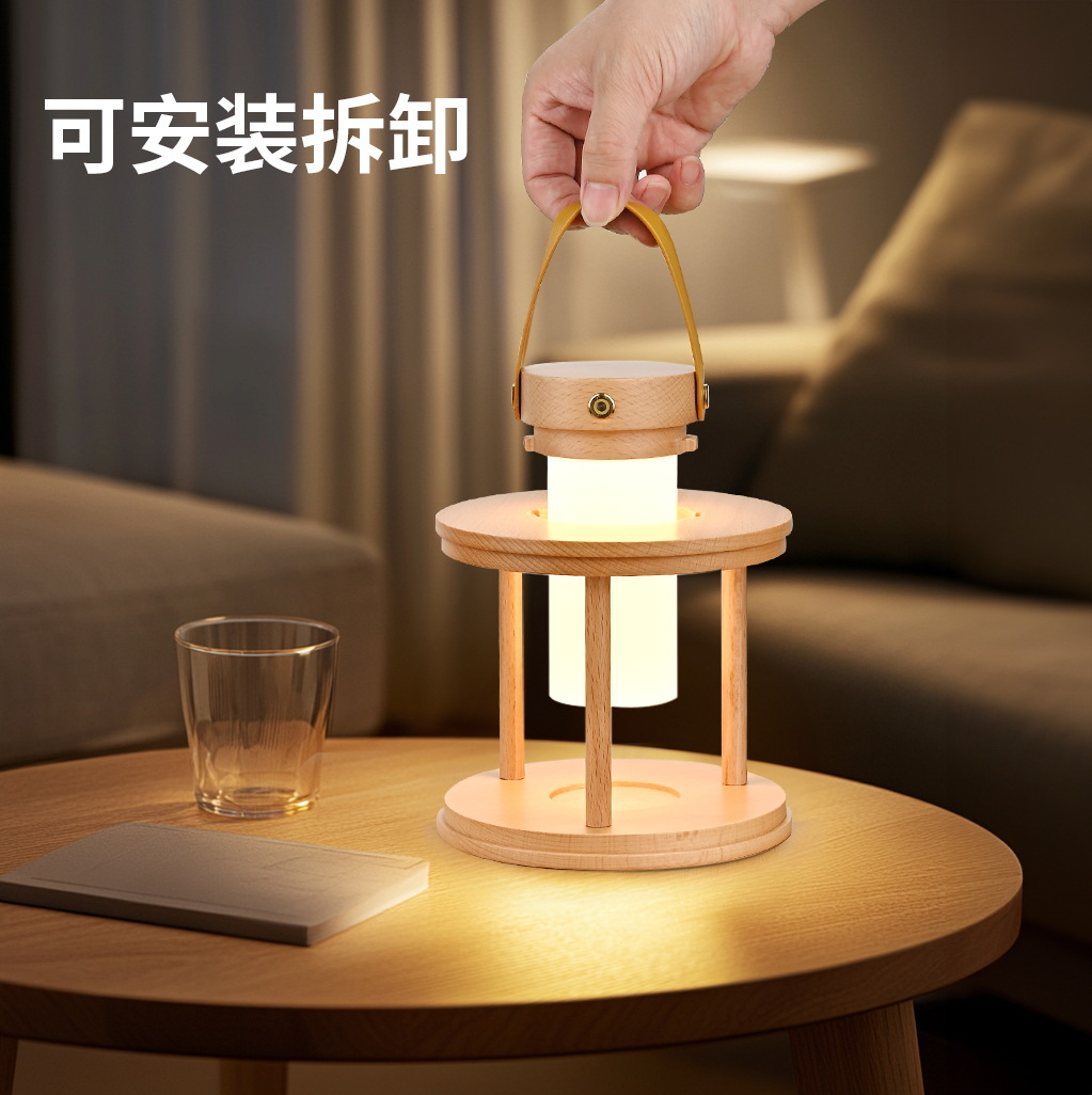 원목 랜턴, 무드등, 침실 테이블 램프 장식품, 너도밤나무 어린이용 LED 캠핑 램프, 선물용 휴대용 캠핑 램프