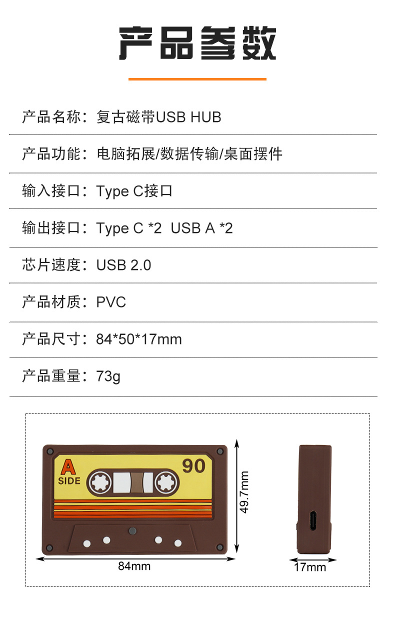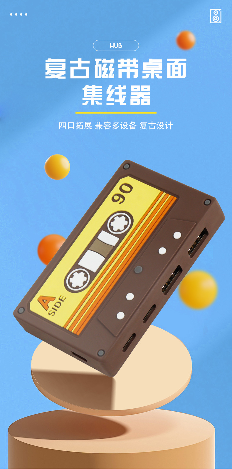 국경 새 테이프 HUB2.0 귀여운 복고풍 데스크탑 장식품 테이프 USB 허브 어댑터 스플리터스토어 가기