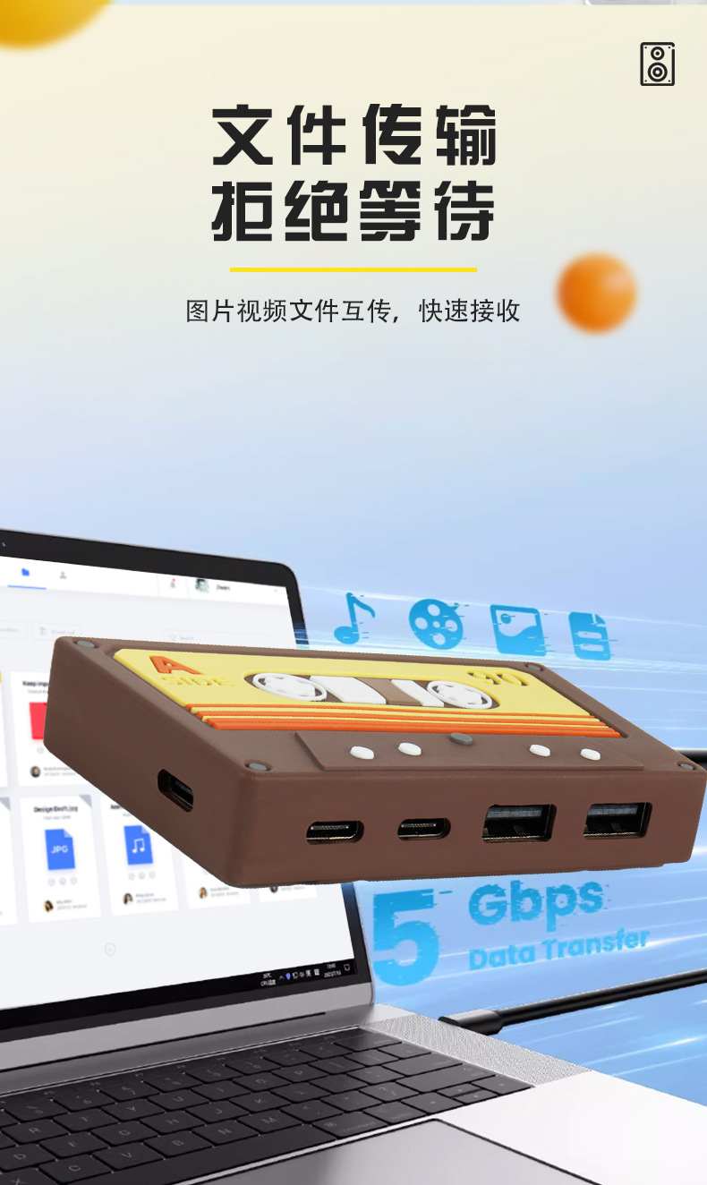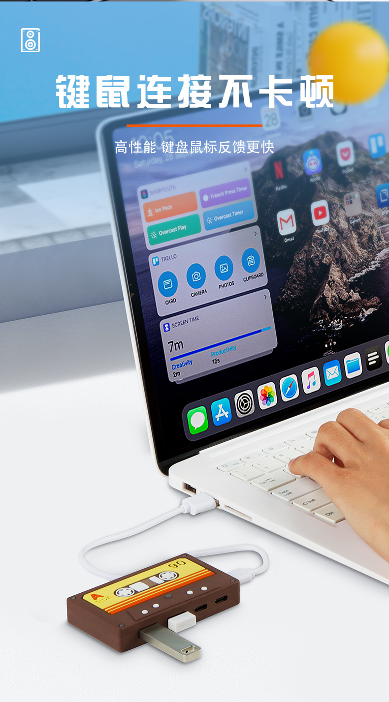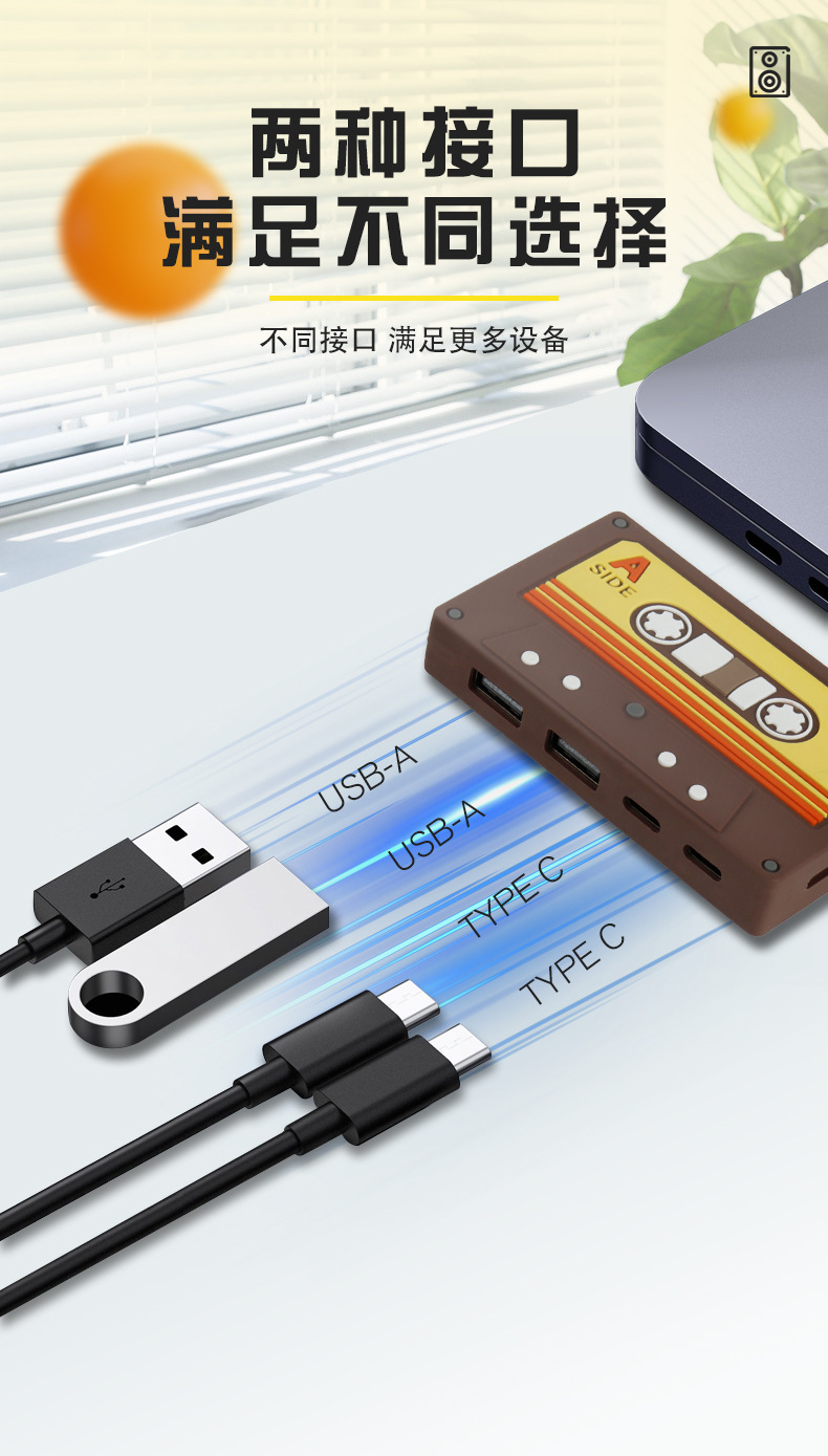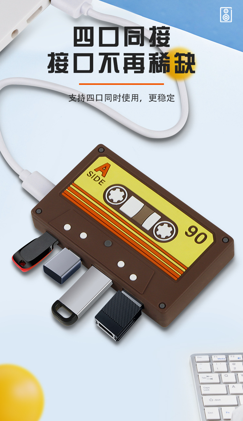 국경 새 테이프 HUB2.0 귀여운 복고풍 데스크탑 장식품 테이프 USB 허브 어댑터 스플리터