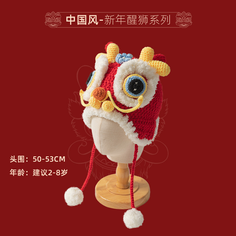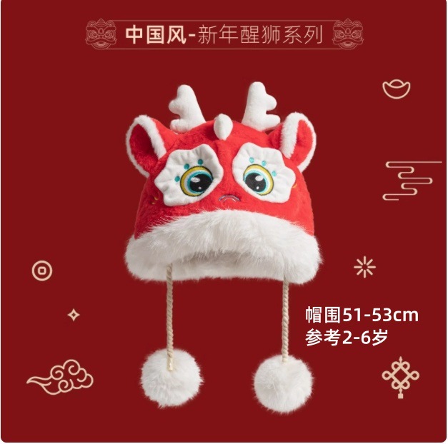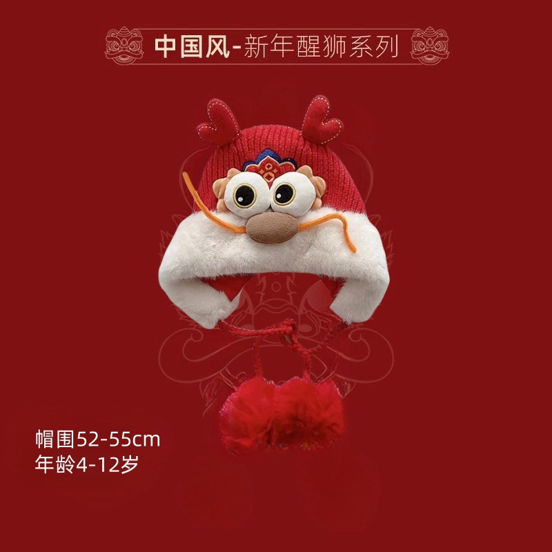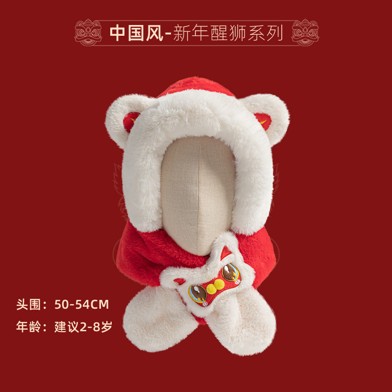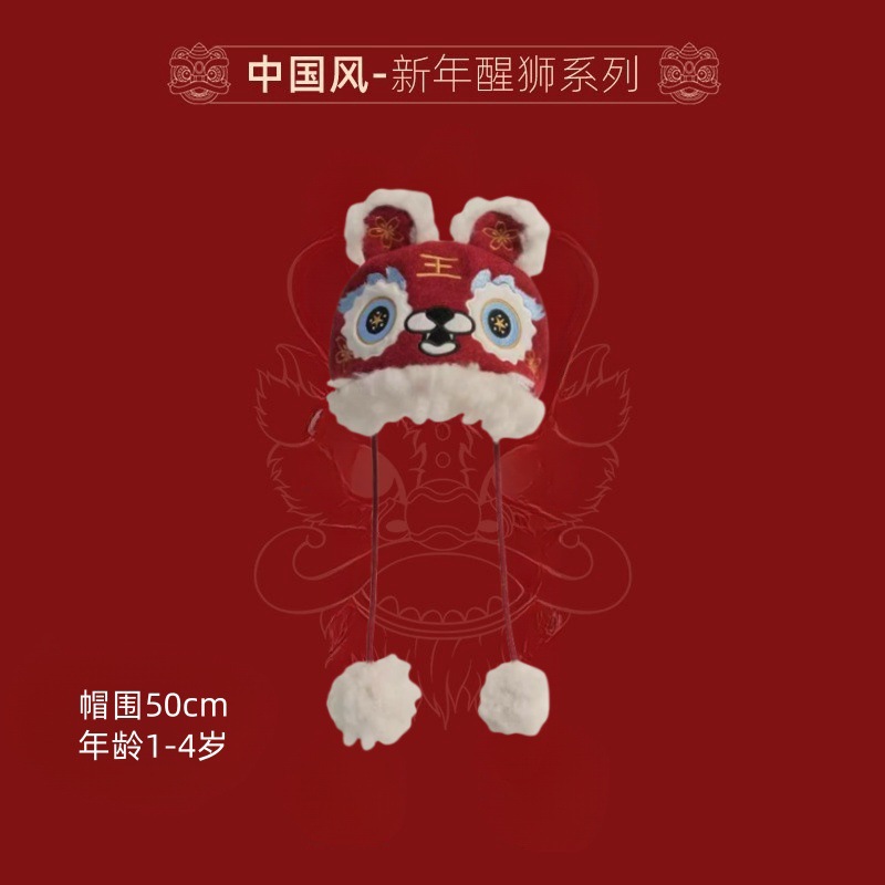 아기 사자 댄스 모자 새해 붉은 축제 중국 스타일 호랑이 머리 모자 귀여운 어린이 가을과 겨울 따뜻한 귀 보호 푹신한 모자스토어 가기