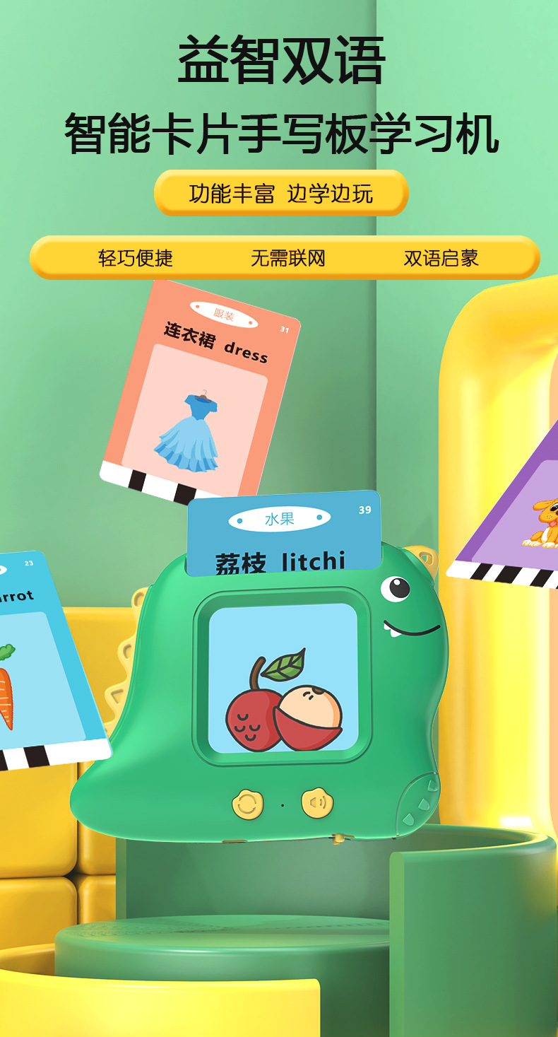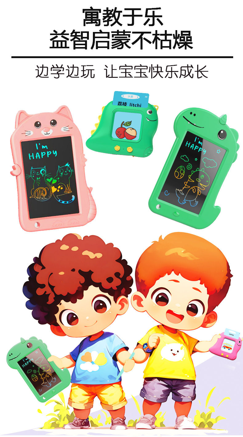 재고 스트레이트 헤어 어린이 손 드로잉 보드 카드 기계 세트 이중 언어 조기 교육 계몽주의 학습 기계 LCD 필기 보드 드로잉 보드