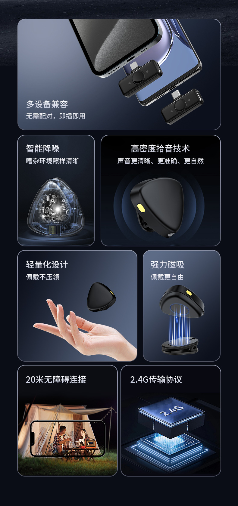 국경 간 개인 모델 폭발 칼라 클립 마이크 휴대 전화 야외 라이브 지능형 소음 감소 미니 라이브 마이크 무선 디지털 디스플레이