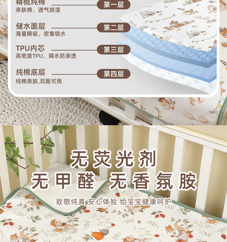 Beianyue 클래스 A 4층 아기 기저귀 패드 통기성 아기 면 매트리스 방수 및 세탁 가능한 아기 시트 항균