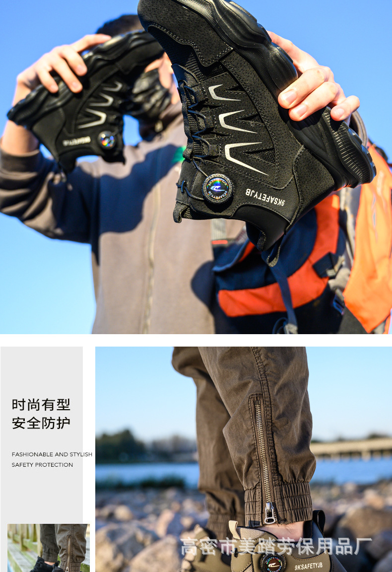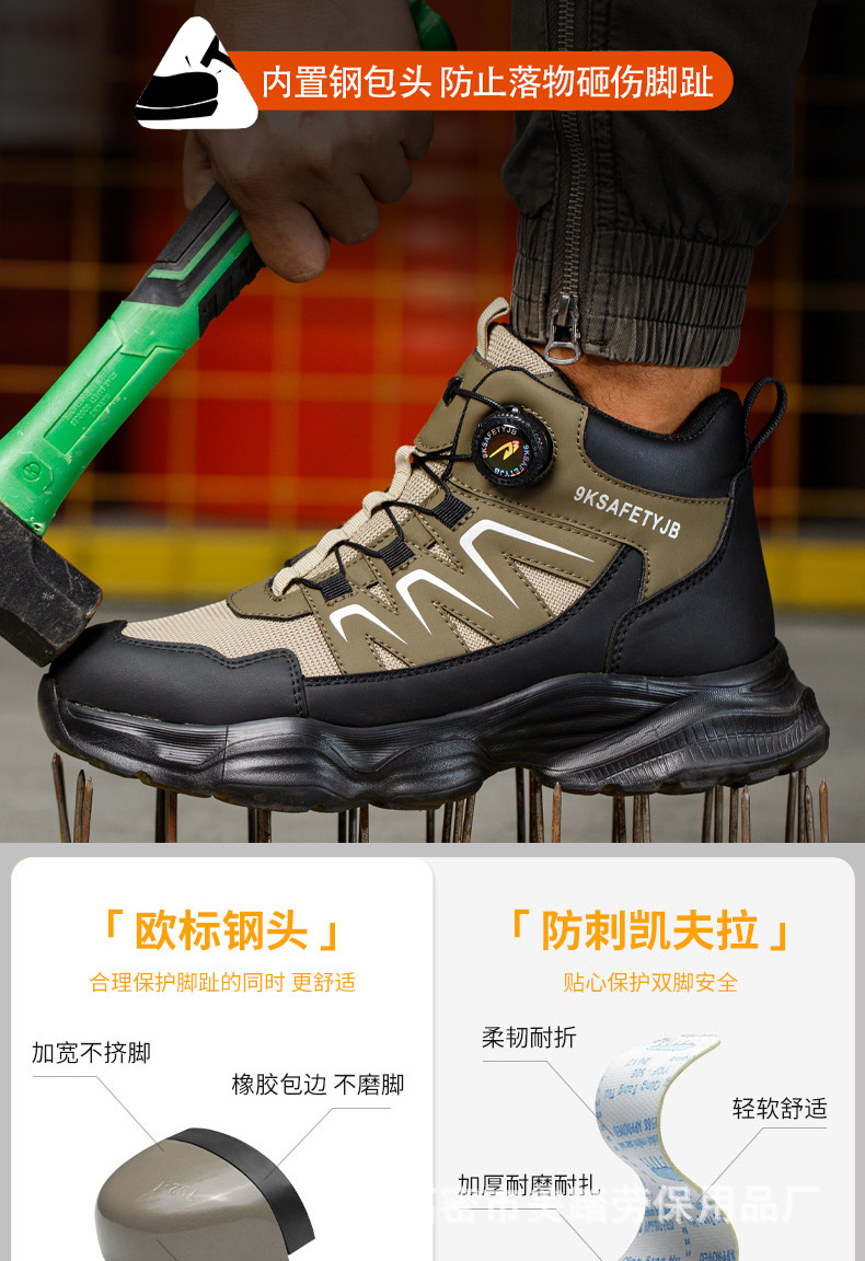 국경 간 봄 새로운 노동 보호 신발 남자 하이 탑 버튼 탄성 안티 스매쉬 안티 펑크 가볍고 편안한 안전 보호 신발