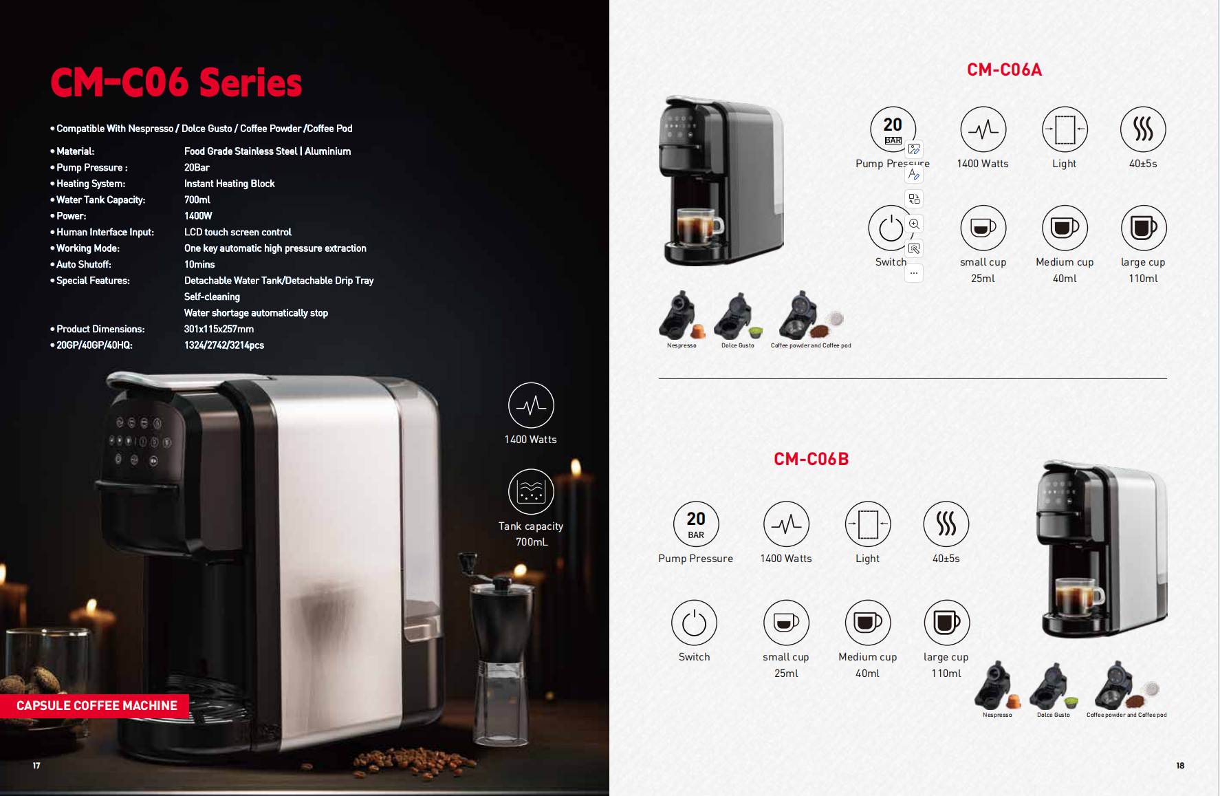 • Compatible With Nespresso / Dolce Gusto / Coffee Powder /Coffee Pod