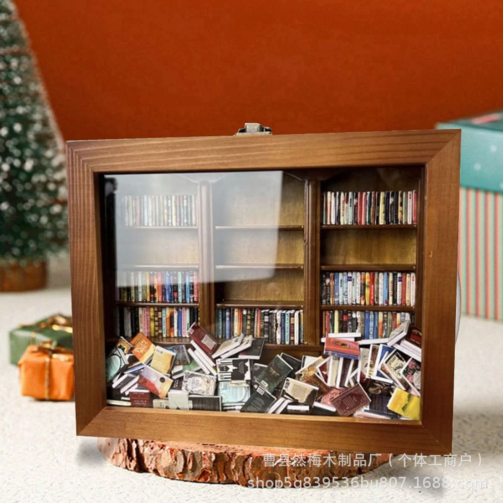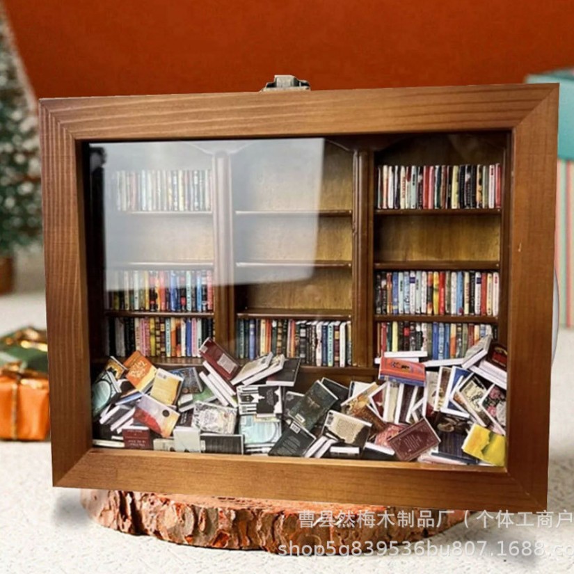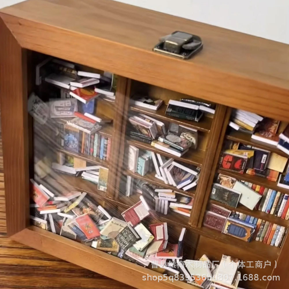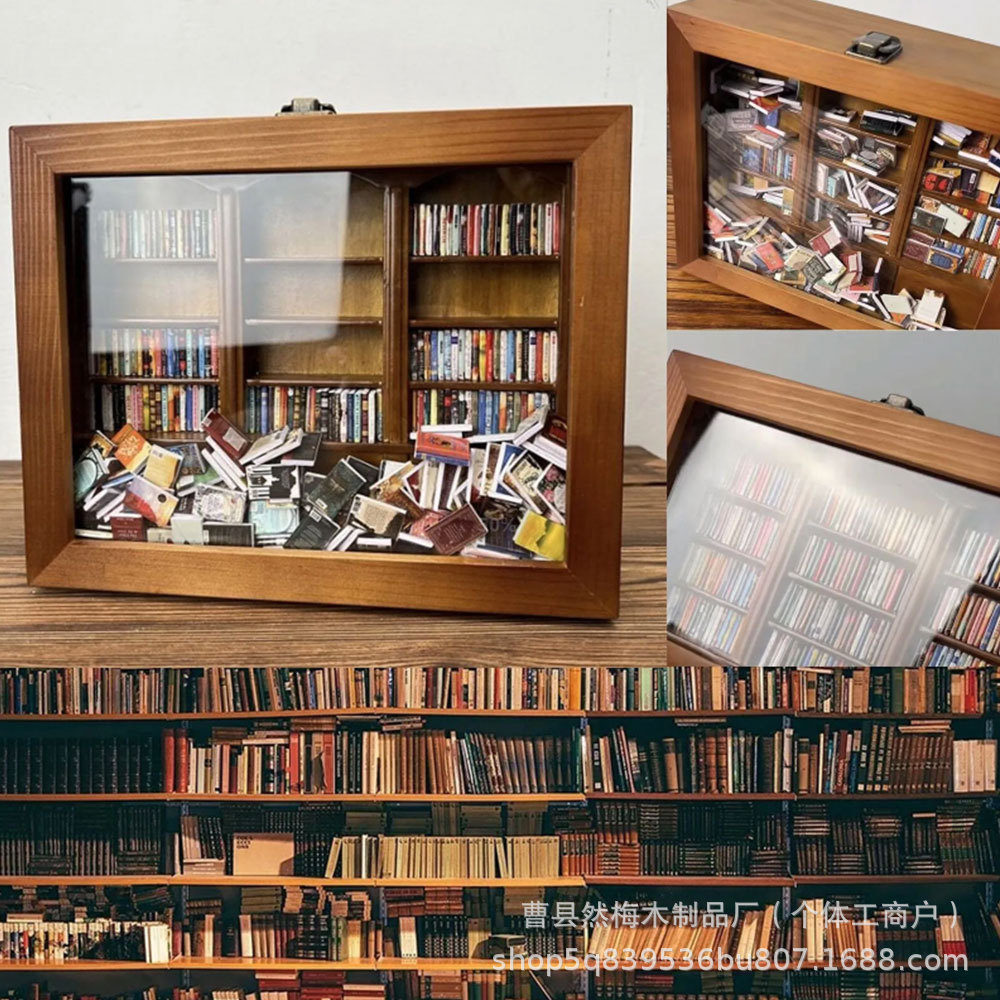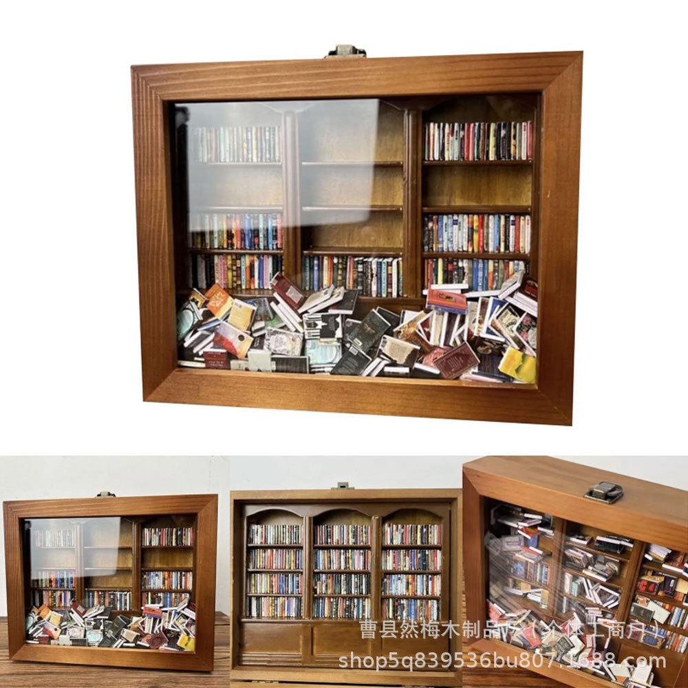 척추 나무 공예와 소나무 큰 불안 방지 책꽂이 미니 책 보관 사무실 학습 데스크톱스토어 가기