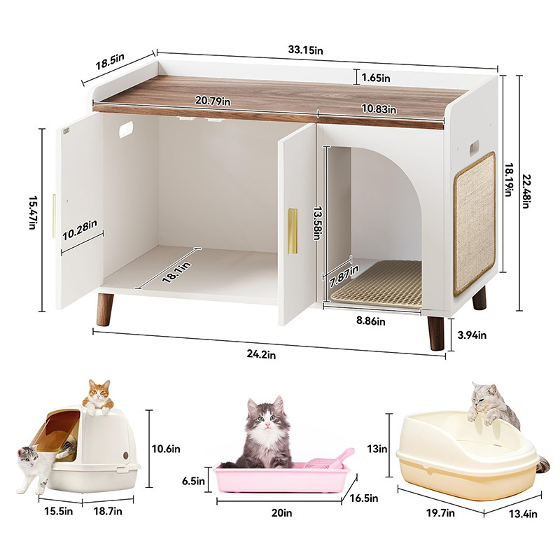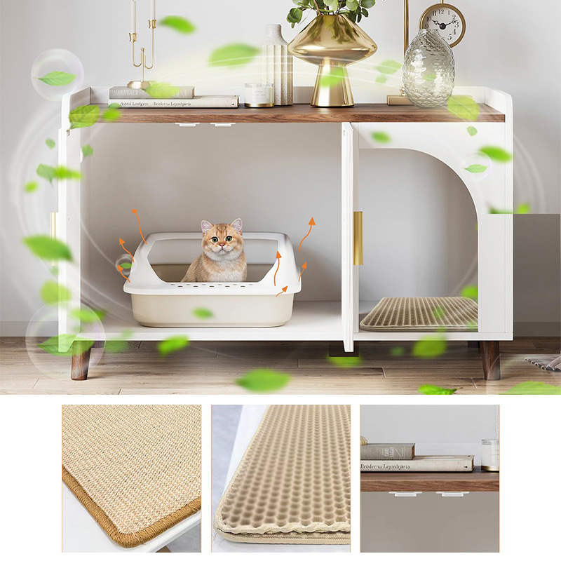 스크래치 패드와 고양이 쓰레기 패드가있는 국경 간 뜨거운 숨겨진 고양이 쓰레기 상자 가구 나무 고양이 집 침대 옆 테이블 보관 캐비닛