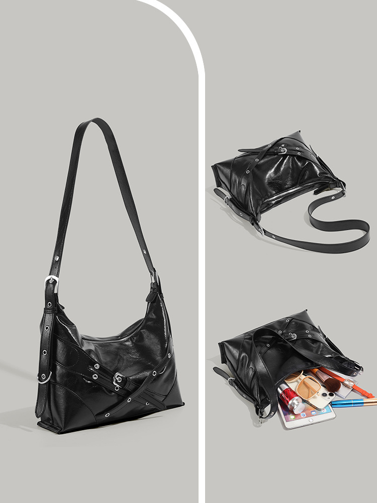 2025 새로운 미국 뜨거운 여자 오토바이 가방 오일 왁스 펑크 스타일 어깨 토트 백 대용량 통근 크로스 바디 백 유행