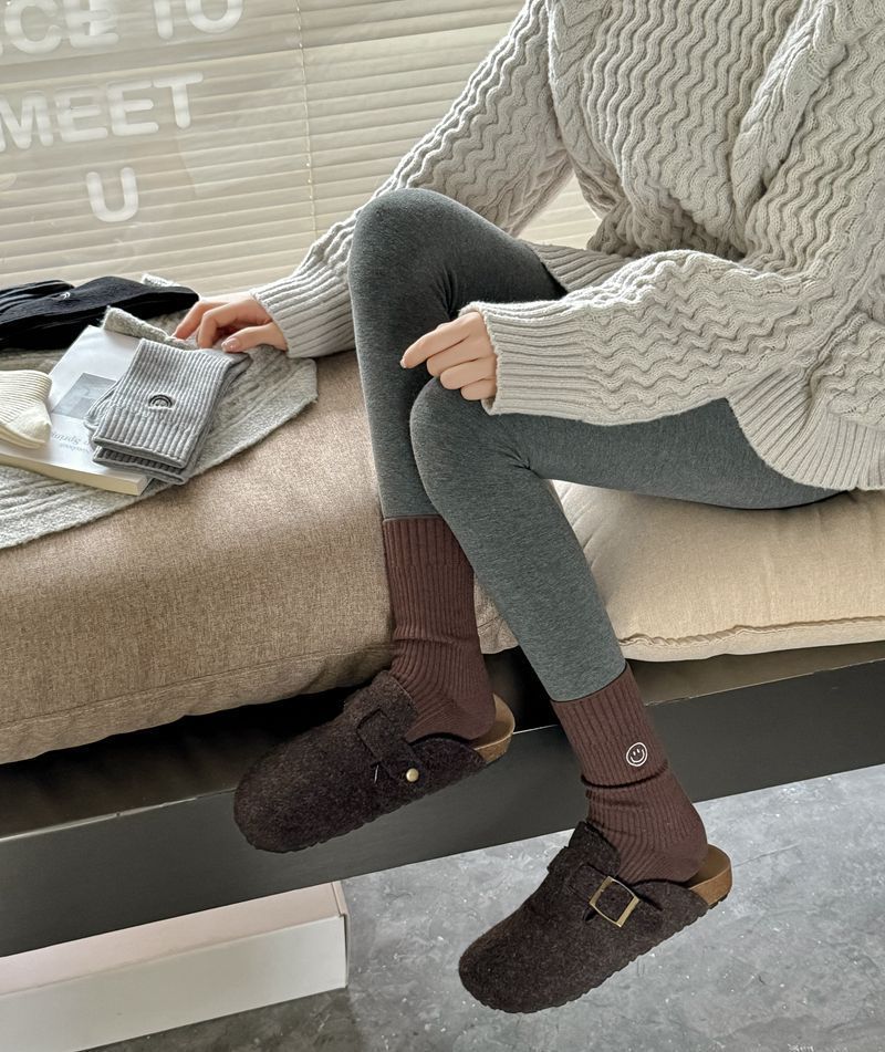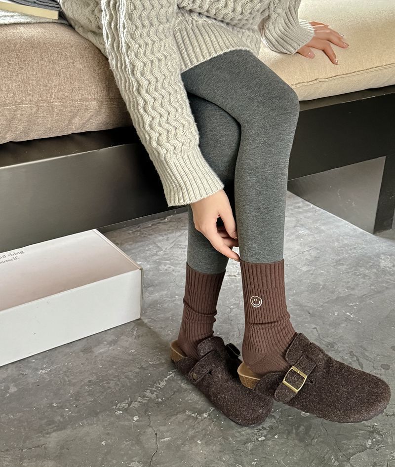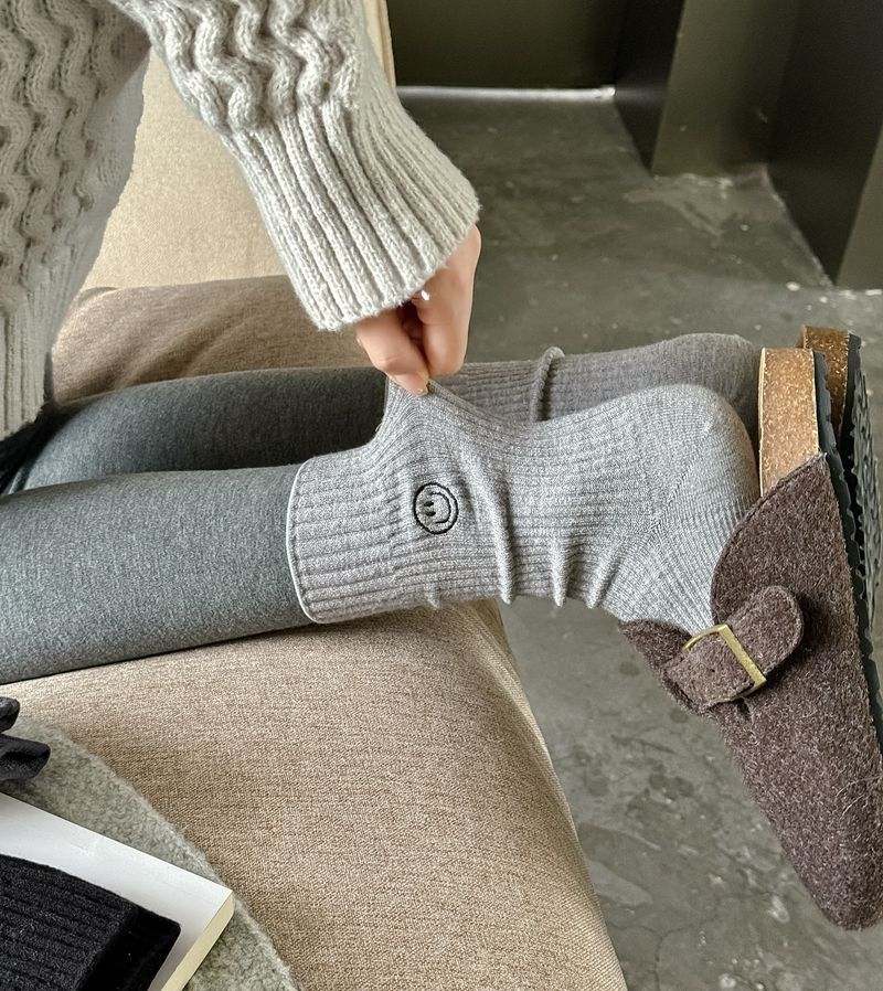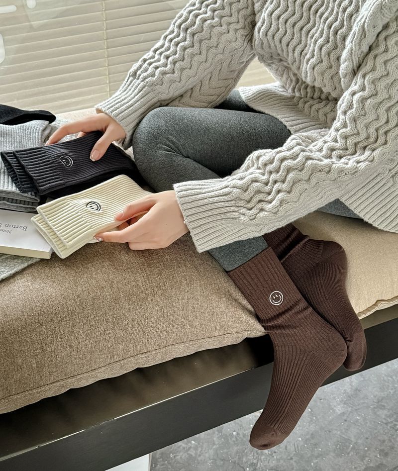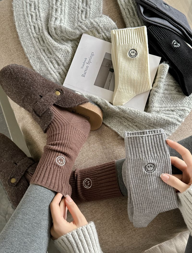 가을과 겨울 더블 니들 스포츠 레저 솔리드 컬러 스마일리 페이스 자수 따뜻한 두꺼운 캐시미어 한국식 중형 롱 배럴 스택 양말스토어 가기