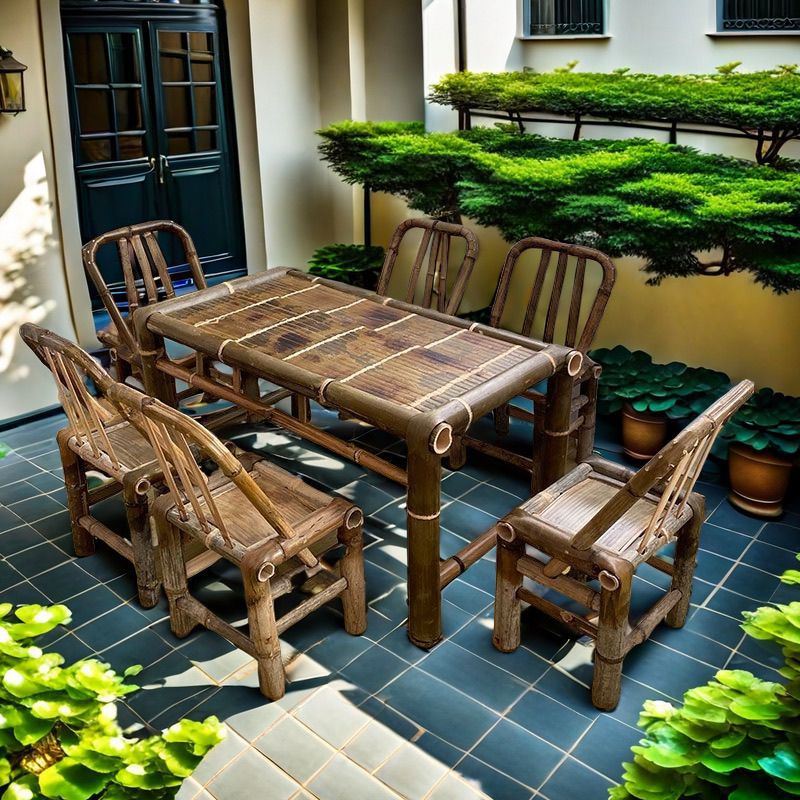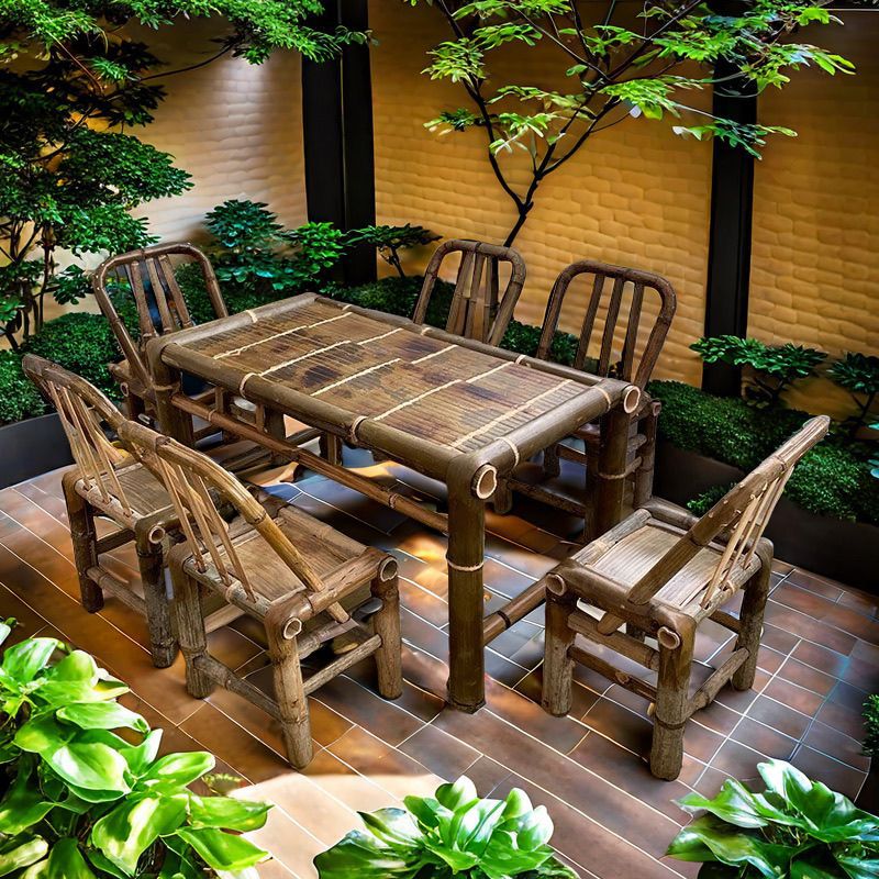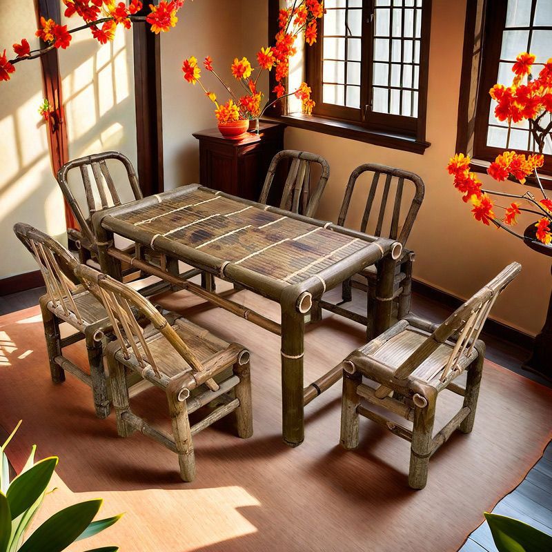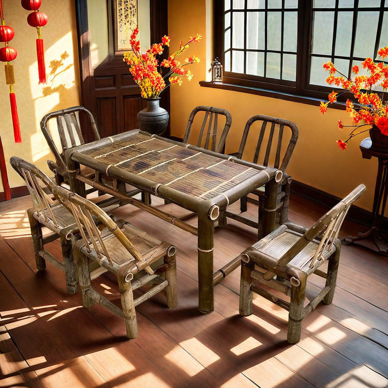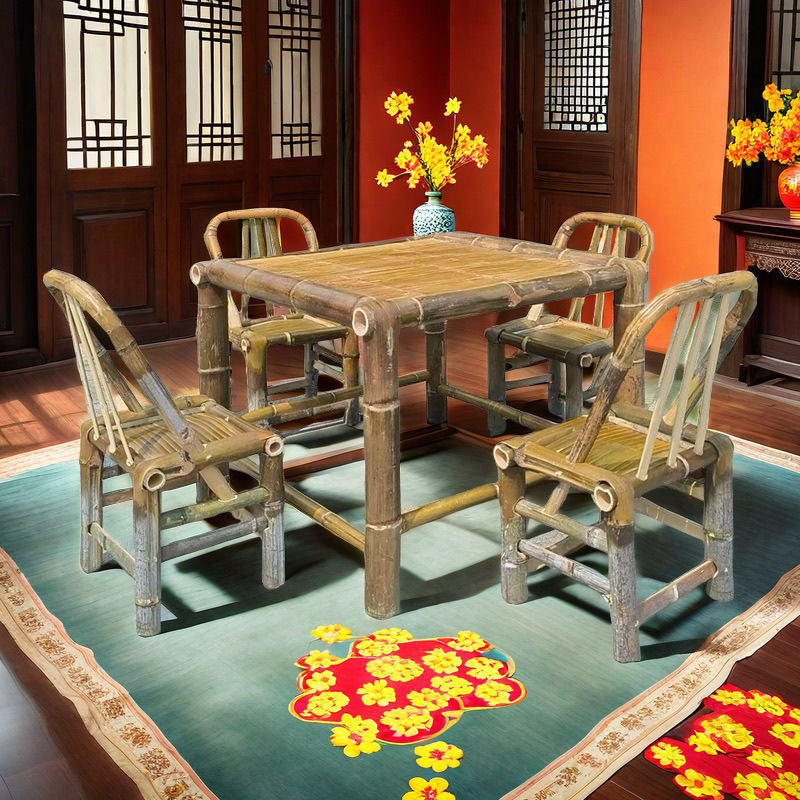 중국 스타일 빈티지 테이블 대나무 테이블과 의자 풀 세트 야외 요리 차 테이블 식사 테이블 커피 테이블 사무실 뜨거운 냄비 대나무 테이블