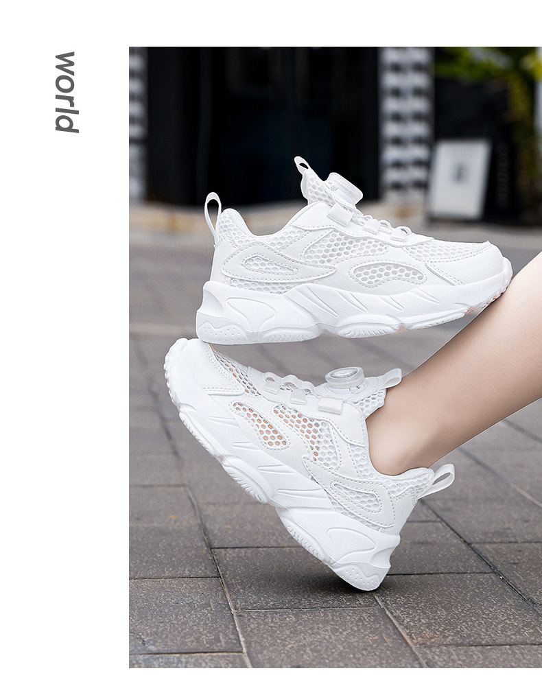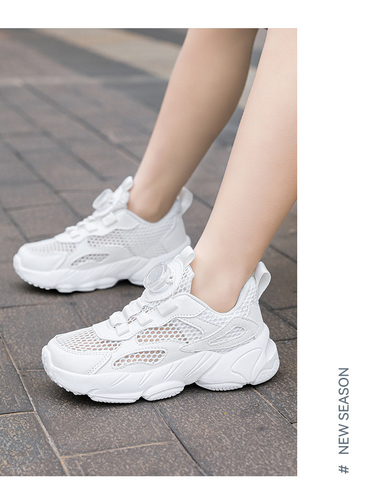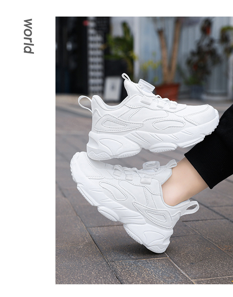 9966 중대형 어린이 회전 버클 통기성 학생 2024 가을 새 가죽 방수 소녀 운동화 미끄럼 방지