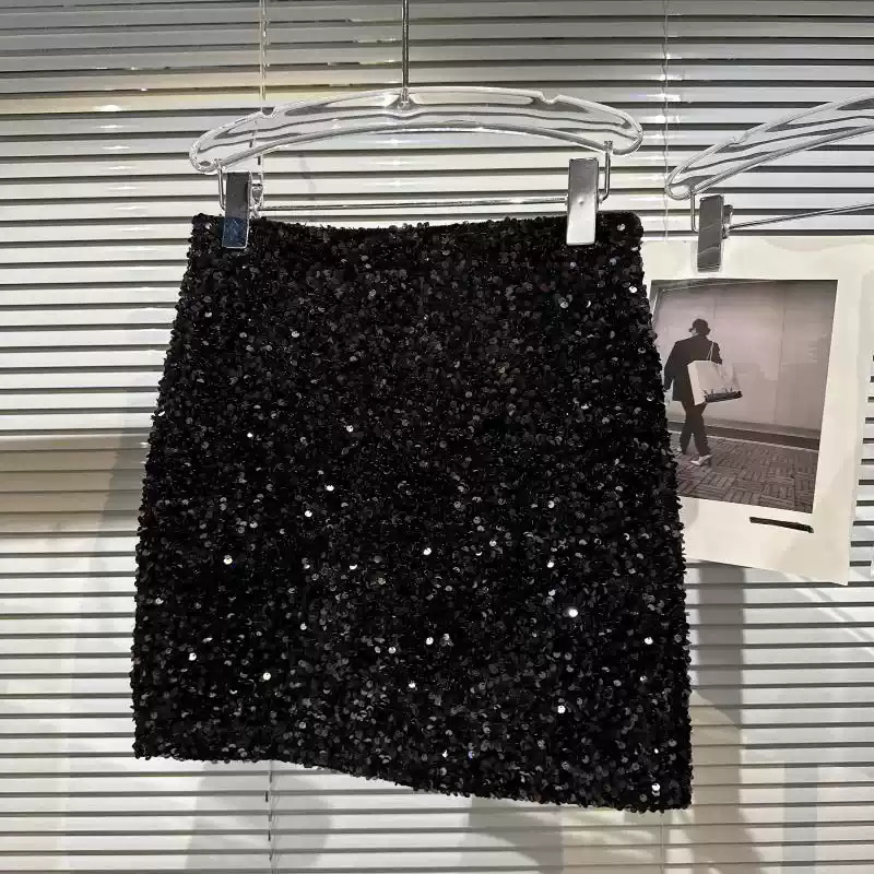 소녀 인터넷 축하 같은 스타일 2024 봄과 가을 새로운 전체 길이 스퀸 반짝 엉덩이 스커트 한국 스타일 짧은 치마 패션 스커트스토어 가기