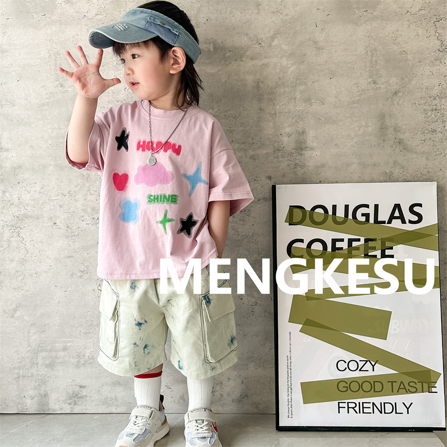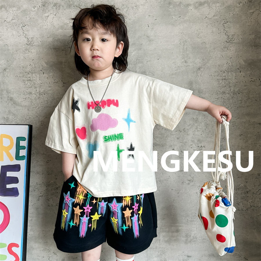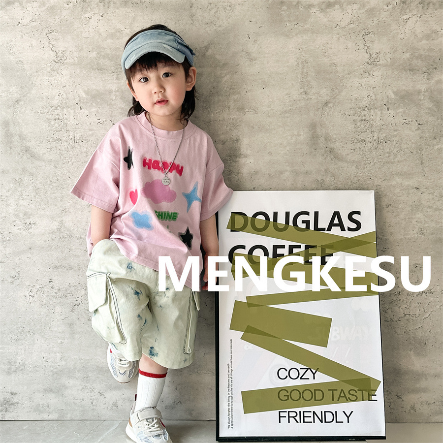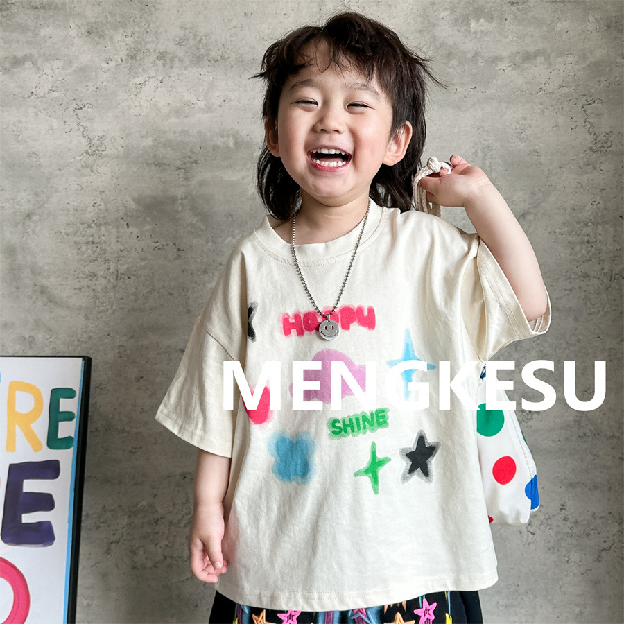 Moe Su Boys 반팔 티셔츠 2025 새로운 여름 아기 면화 패션 브랜드 여름 어린이 반소매스토어 가기