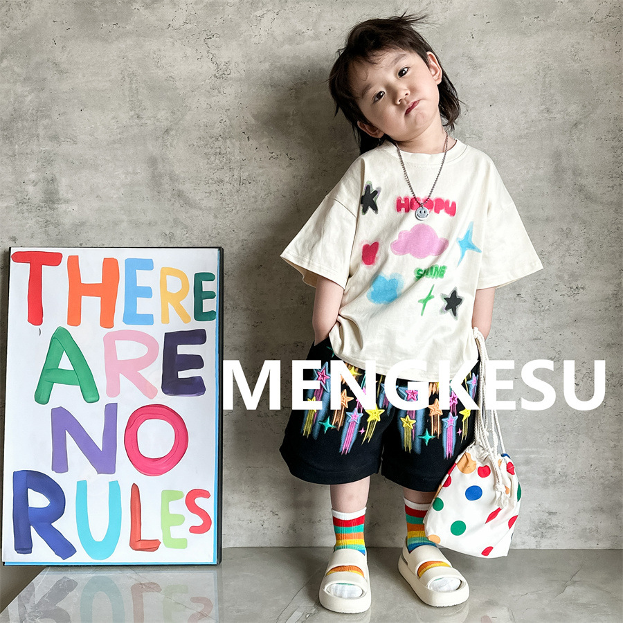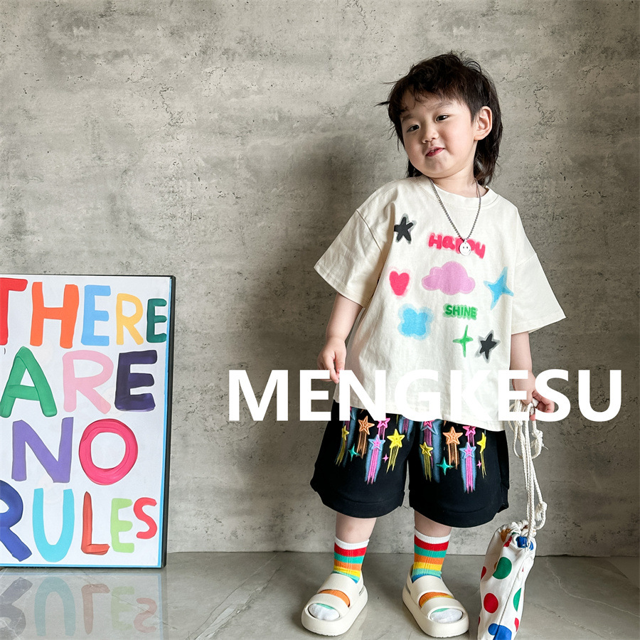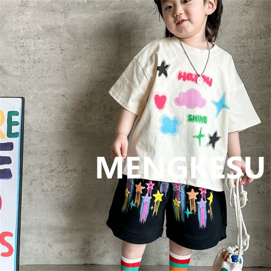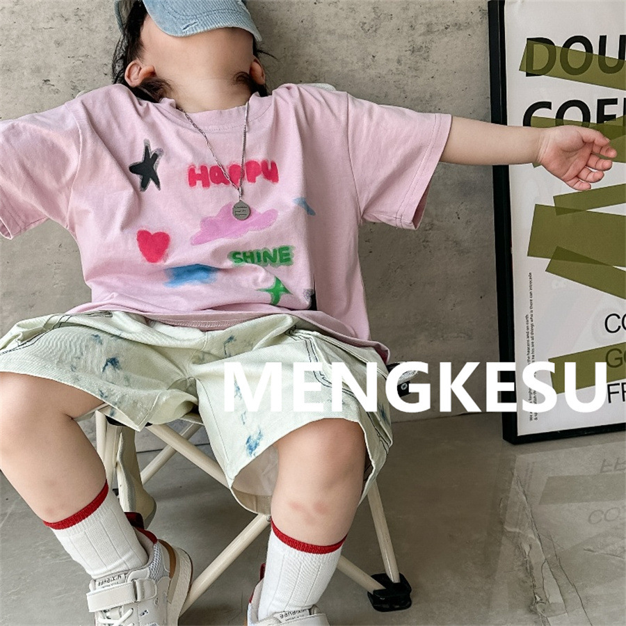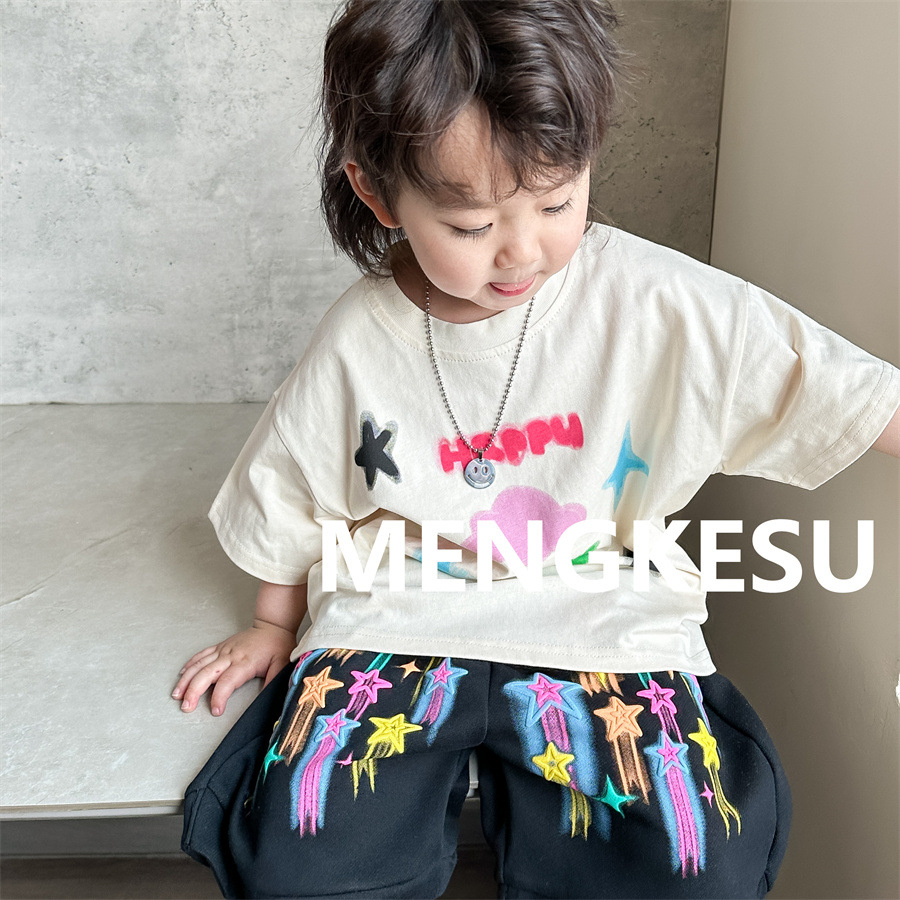 Moe Su Boys 반팔 티셔츠 2025 새로운 여름 아기 면화 패션 브랜드 여름 어린이 반소매스토어 가기