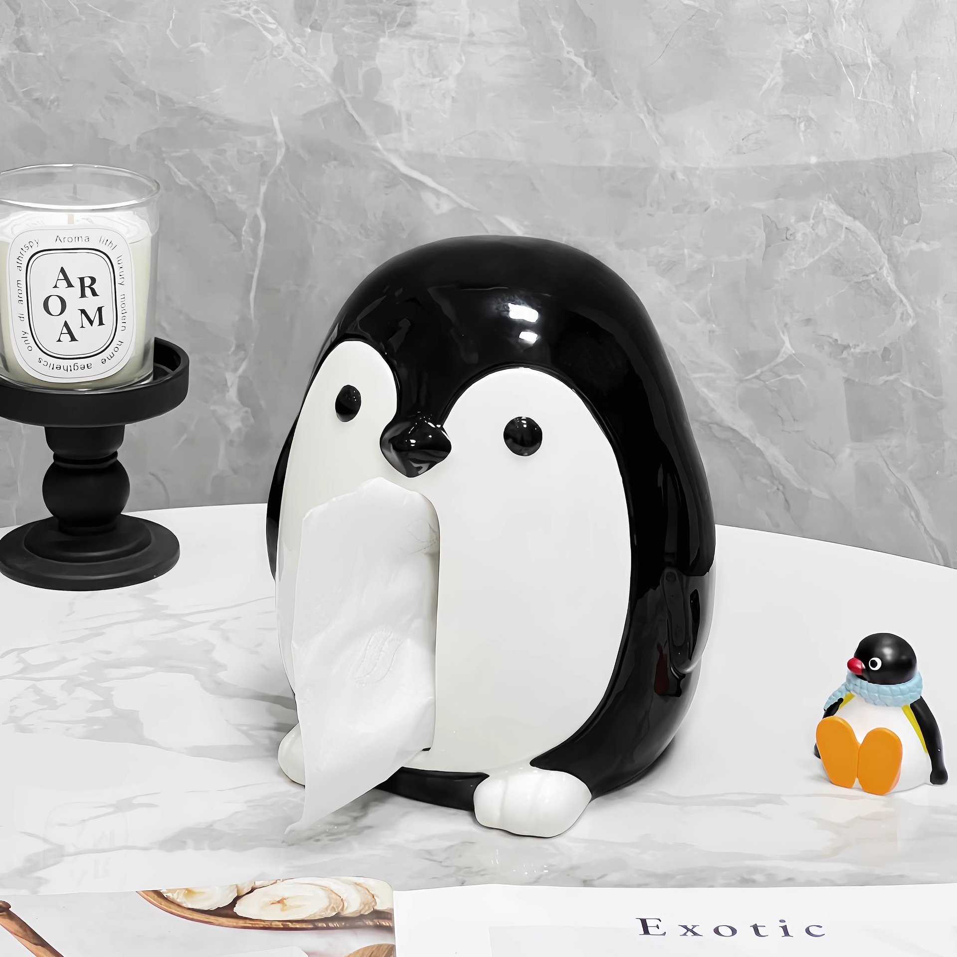 펭귄 조직 상자 거실 고급 감각 창조적 인 홈 장식품 데스크탑 커피 테이블 고급 장식 테이블 종이 상자스토어 가기