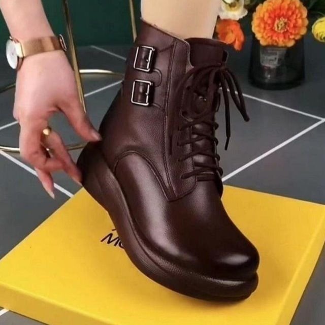 대외 무역 2023 가을 및 겨울 새로운 여성 가죽 부츠 따뜻한 플랫 부츠 편안한 마틴 안티 슬립 마틴 부츠스토어 가기