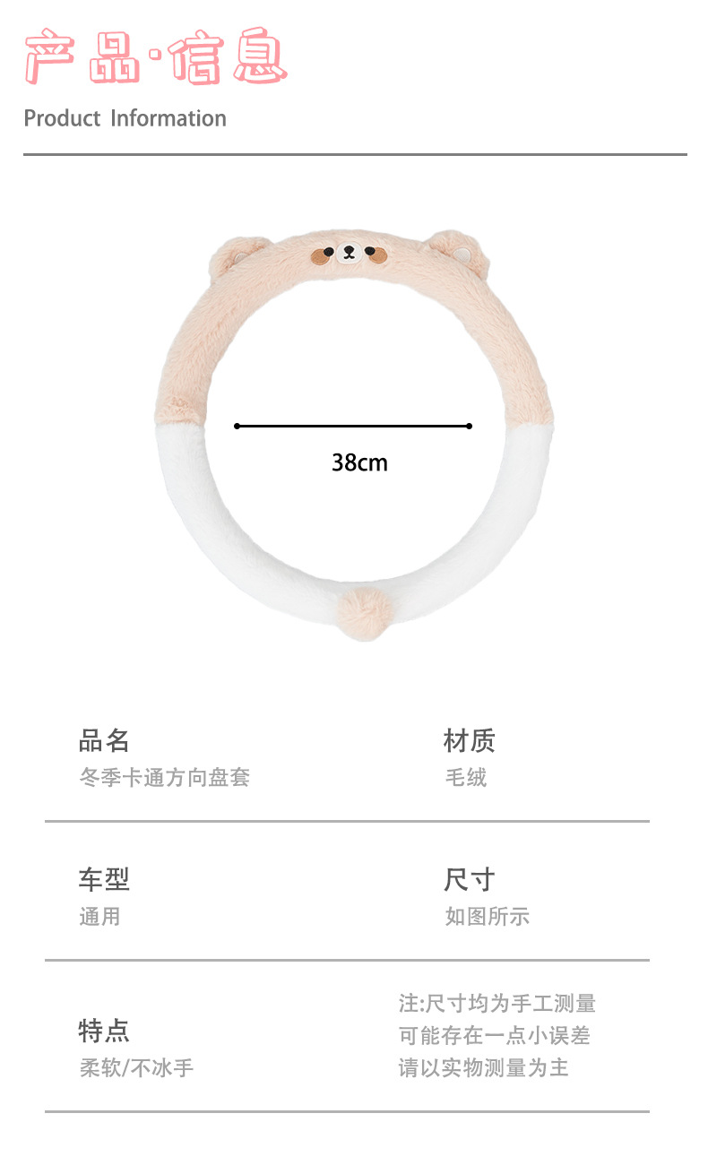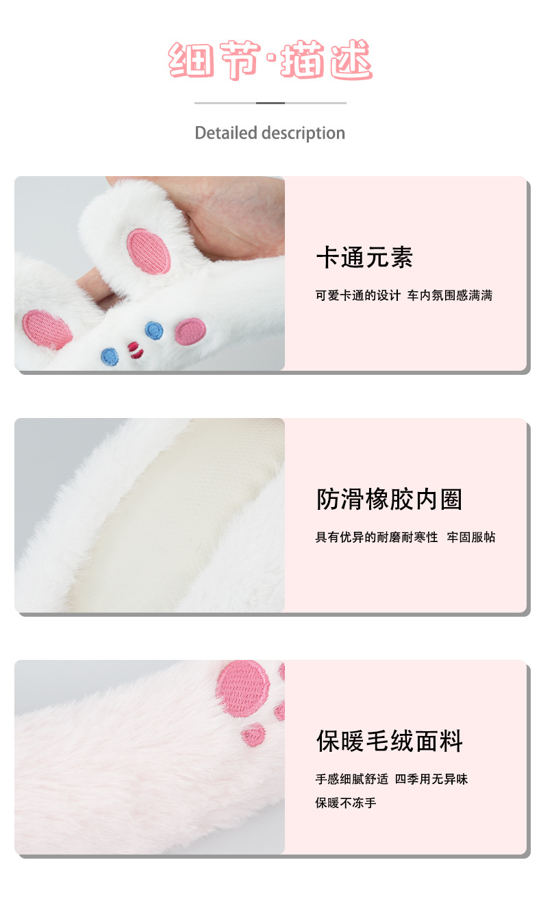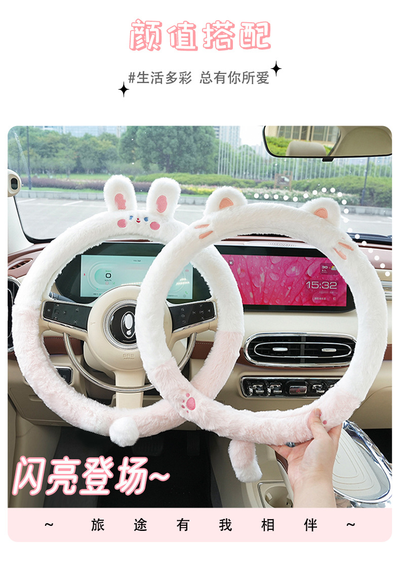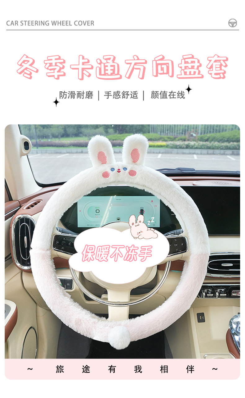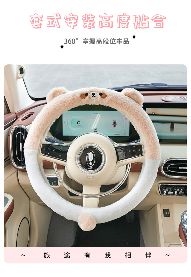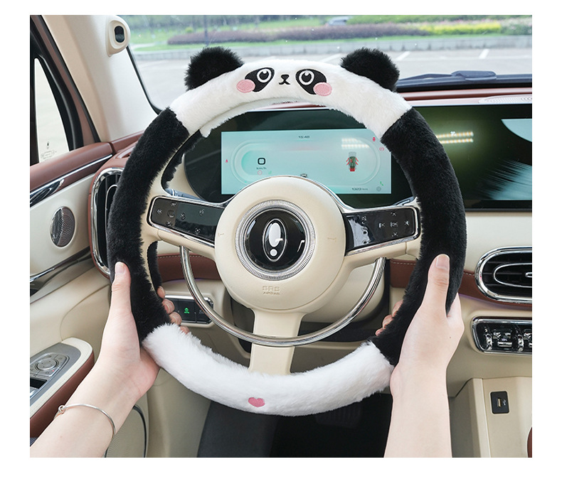 • 모조 토끼 모피 자수 팬더 스티어링 휠 커버