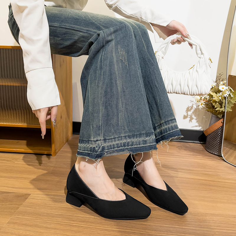 프랑스-작은 사각형 머리 내부와 외부 증가 7CM 신발 여성의 2024 가을과 겨울 새로운 레오파드 무늬 가죽 바느질 두꺼운 뒤꿈치 신발스토어 가기