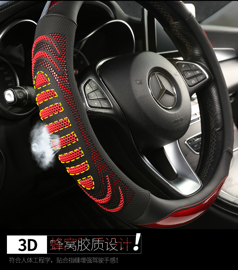 25 개의 새로운 3 차원 벌집 라운드 38cm 보편적 인 4 계절 자동차 스티어링 휠 커버 통기성 땀 흡수성 커버 국경스토어 가기