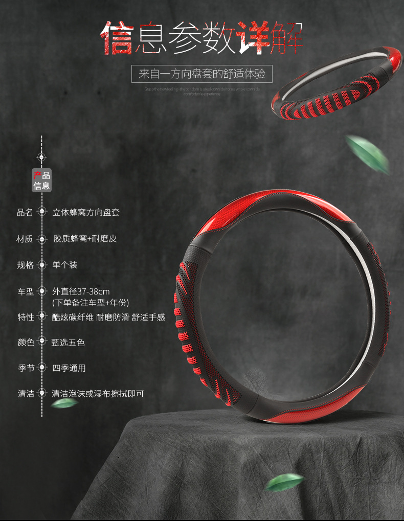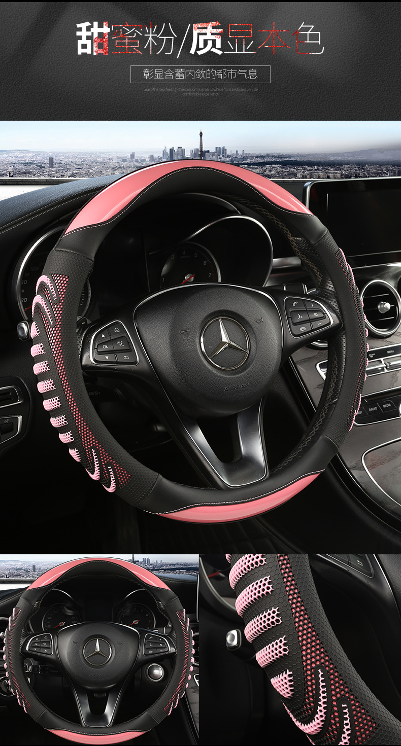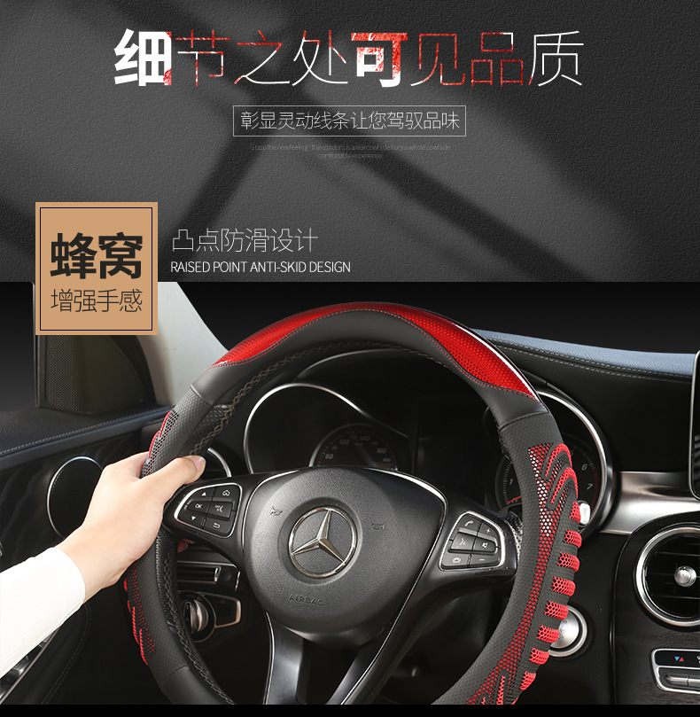 25 개의 새로운 3 차원 벌집 라운드 38cm 보편적 인 4 계절 자동차 스티어링 휠 커버 통기성 땀 흡수성 커버 국경