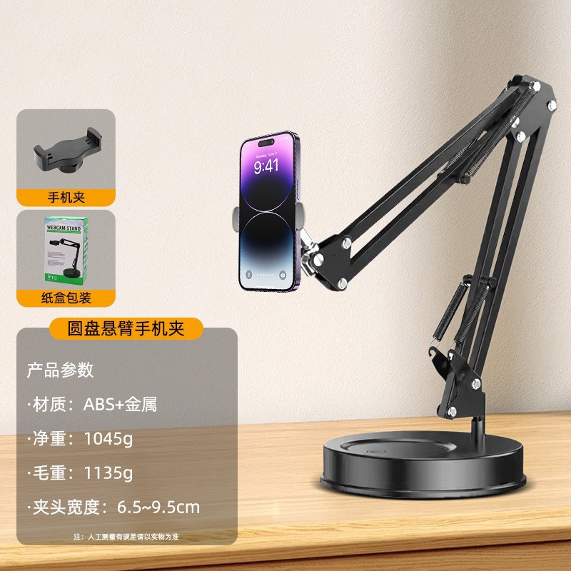 공장 직접 공급 휴대 전화 라이브 사진 브래킷 데스크탑 가중치 베이스 플랫 클립 조정 가능한 디스크 캔틸레버 브래킷