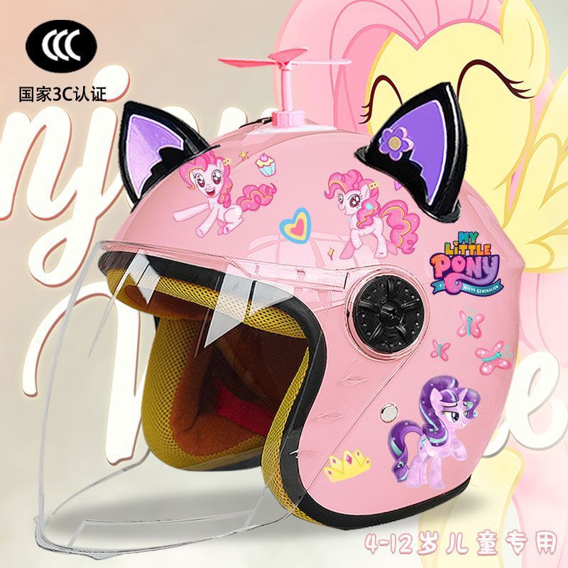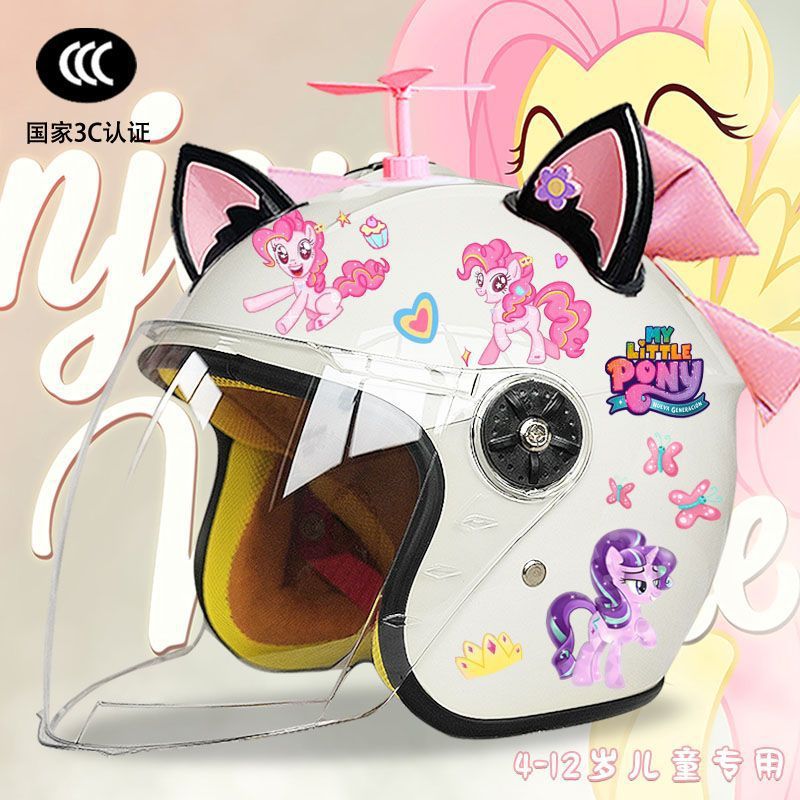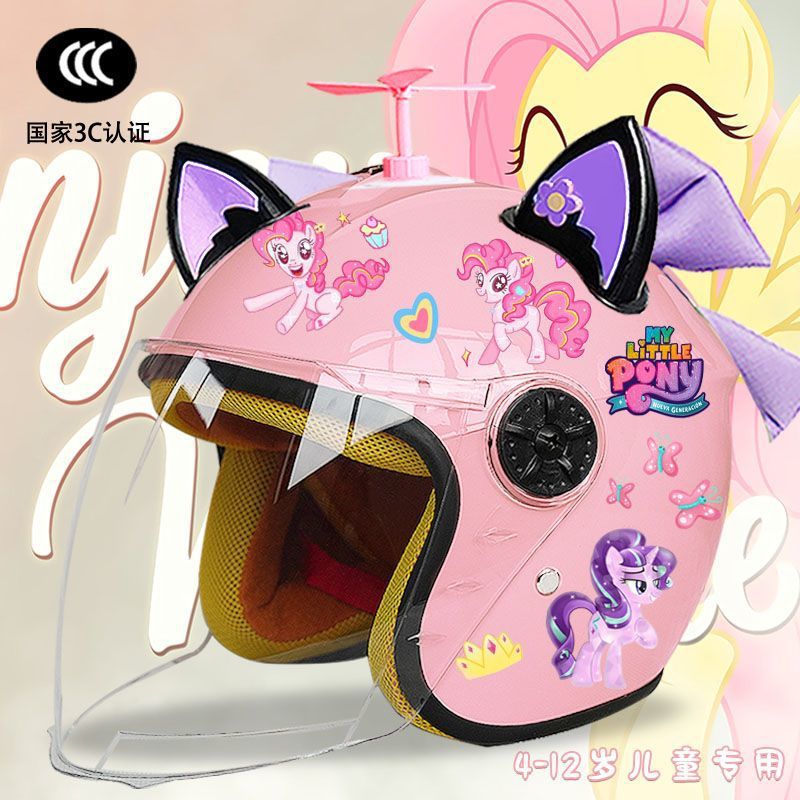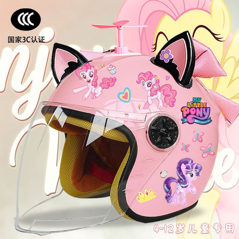 가을과 겨울 어린이 전기 자동차 헬멧 따뜻한 사계절 유니버설 귀여운 포니 하프 헬멧 겨울 학생 헬멧