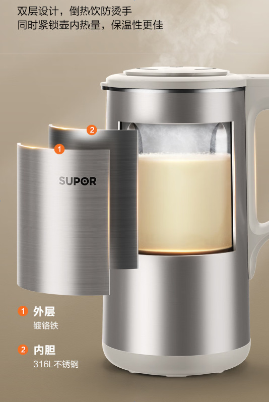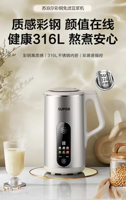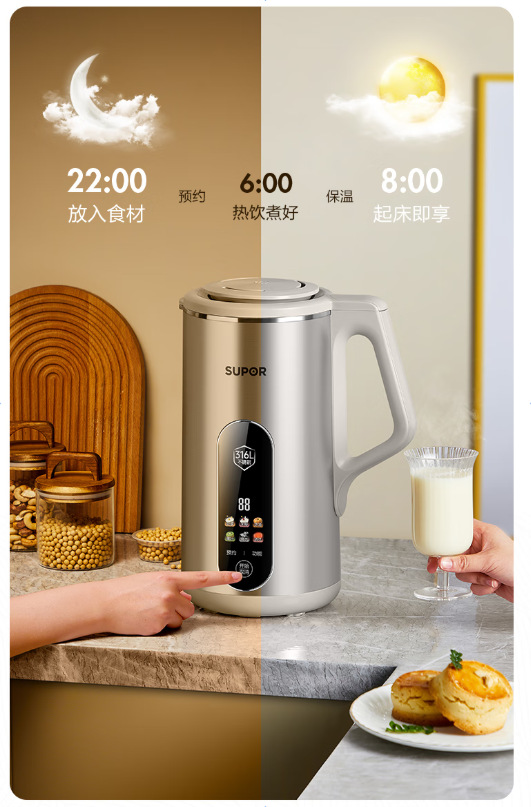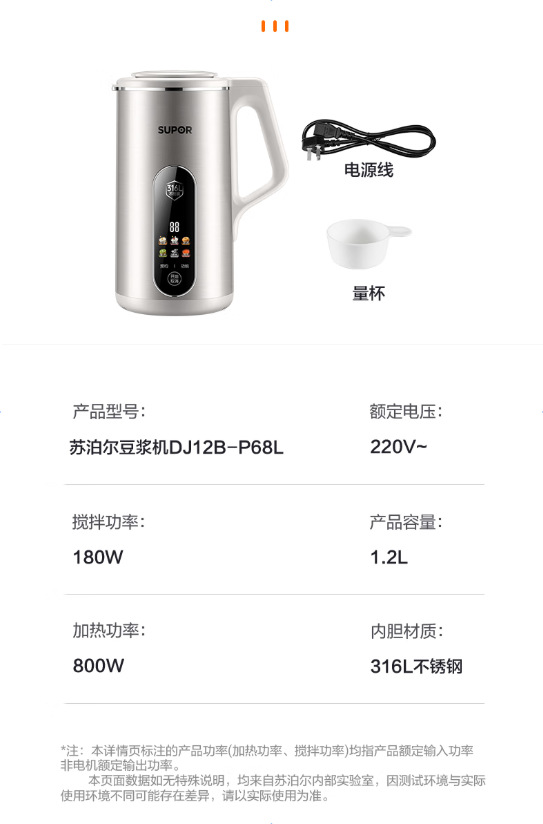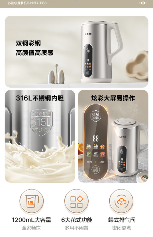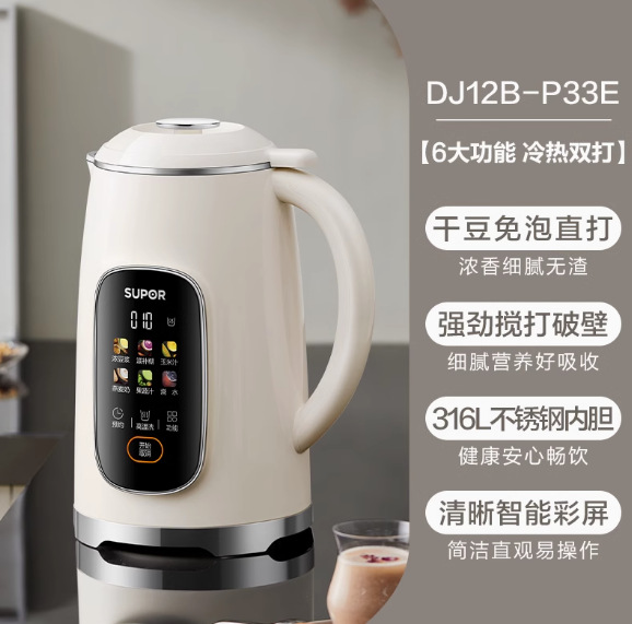 Supor 가정용 두유 기계 1.2L 다기능 필터 프리 벽 파괴 기계 304 등급 스테인레스 스틸 DJ12B-P39E스토어 가기