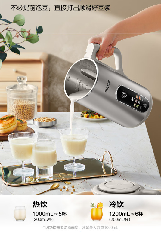 Supor 가정용 두유 기계 1.2L 다기능 필터 프리 벽 파괴 기계 304 등급 스테인레스 스틸 DJ12B-P39E