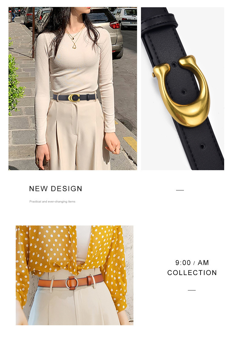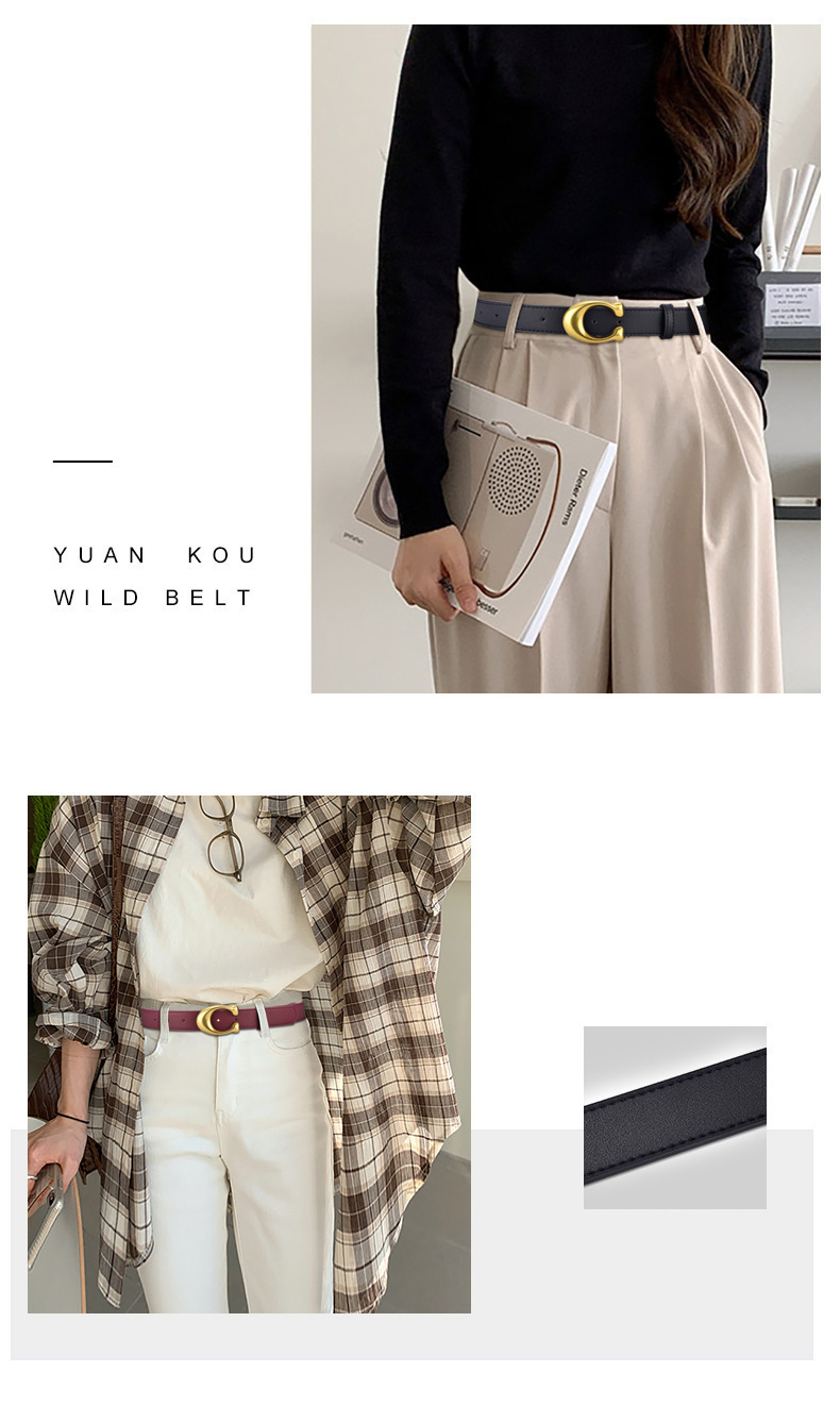 여성 벨트 패션 올 매치 청바지 장식 벨트 여성용 Ins 스타일 블랙 Cowhide 벨트 간단한 한국 스타일 트렌디스토어 가기