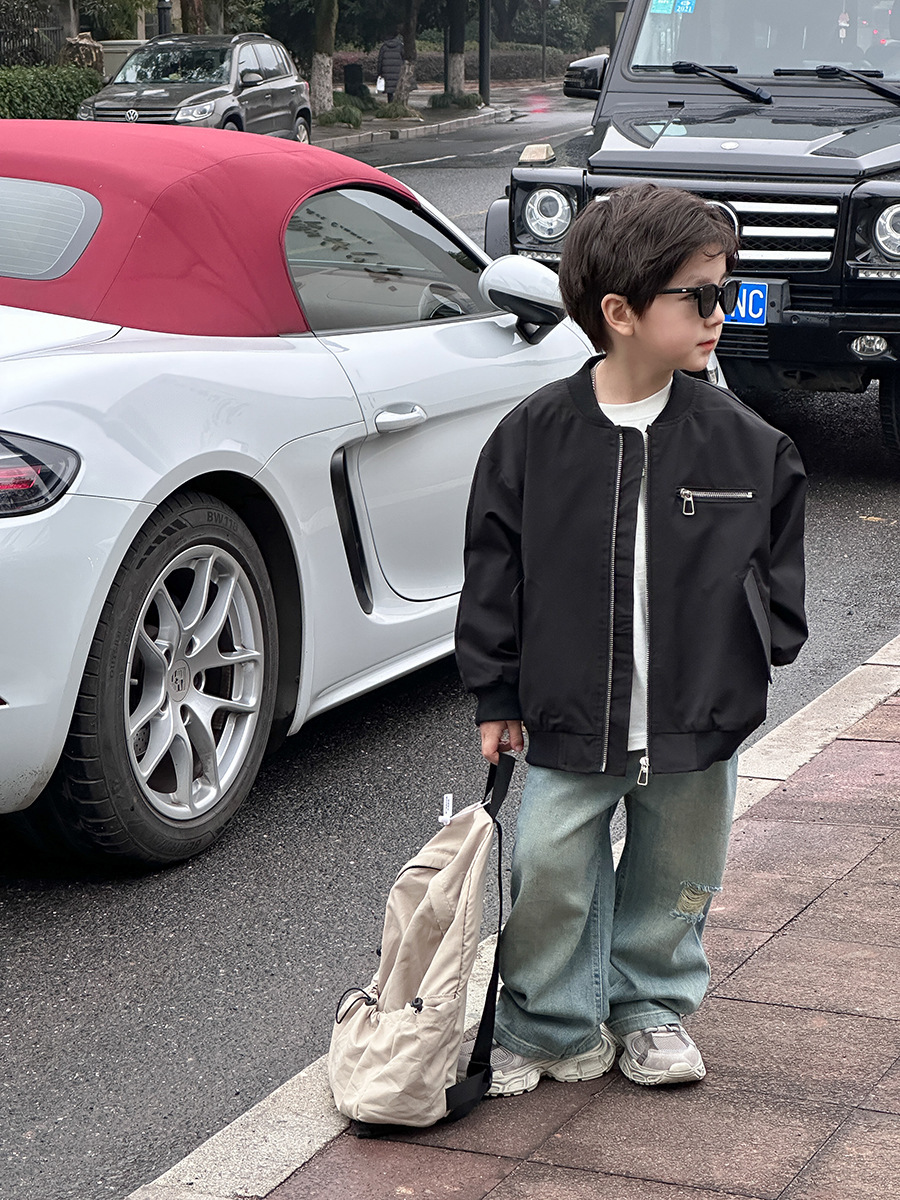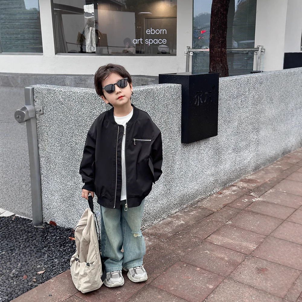 2024 봄 가을 남아 야구 점퍼 아동용 상의 지퍼 중대형 아동용 재킷 레터 프린트 한국 스타일 트렌디 아동복