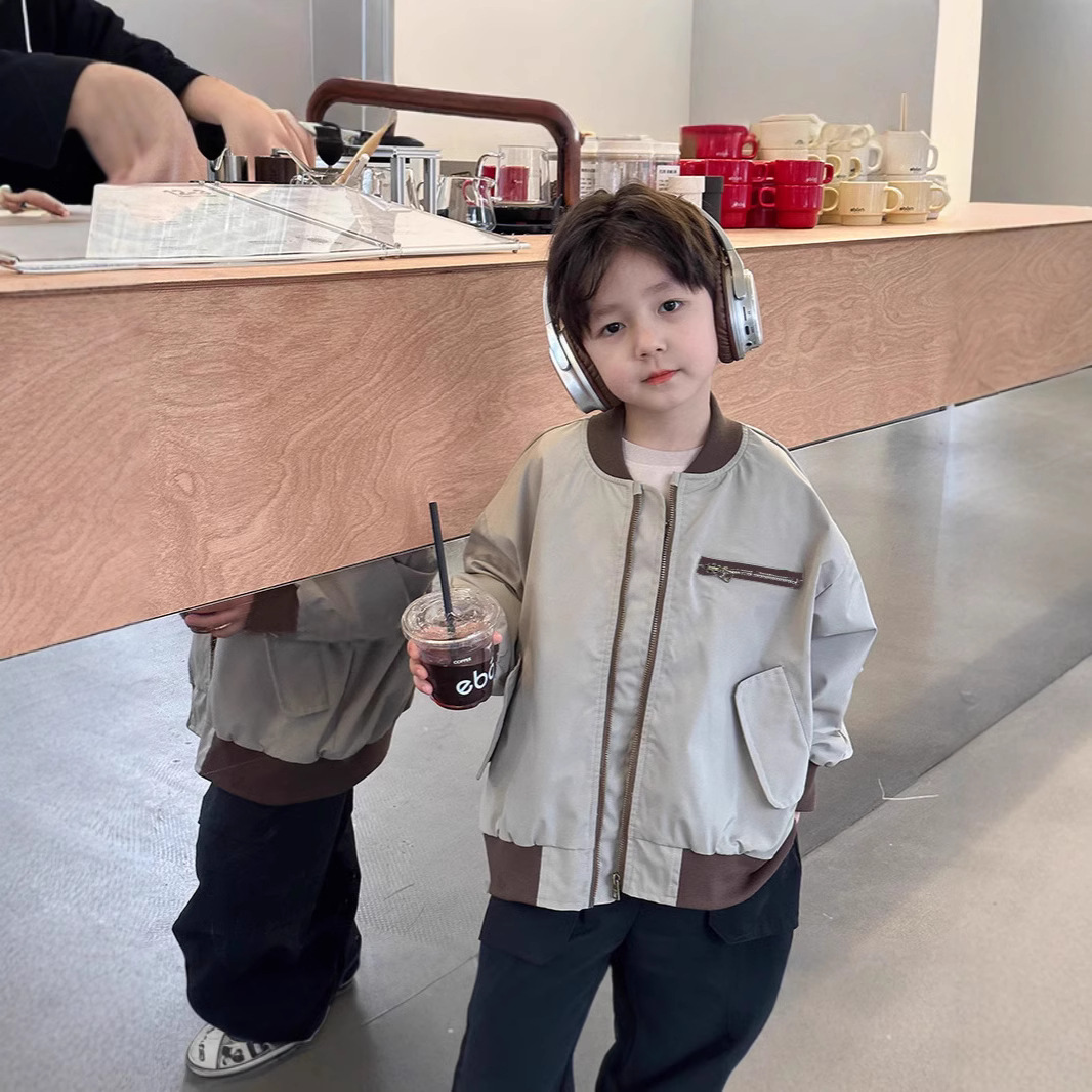 2024 봄 가을 남아 야구 점퍼 아동용 상의 지퍼 중대형 아동용 재킷 레터 프린트 한국 스타일 트렌디 아동복스토어 가기