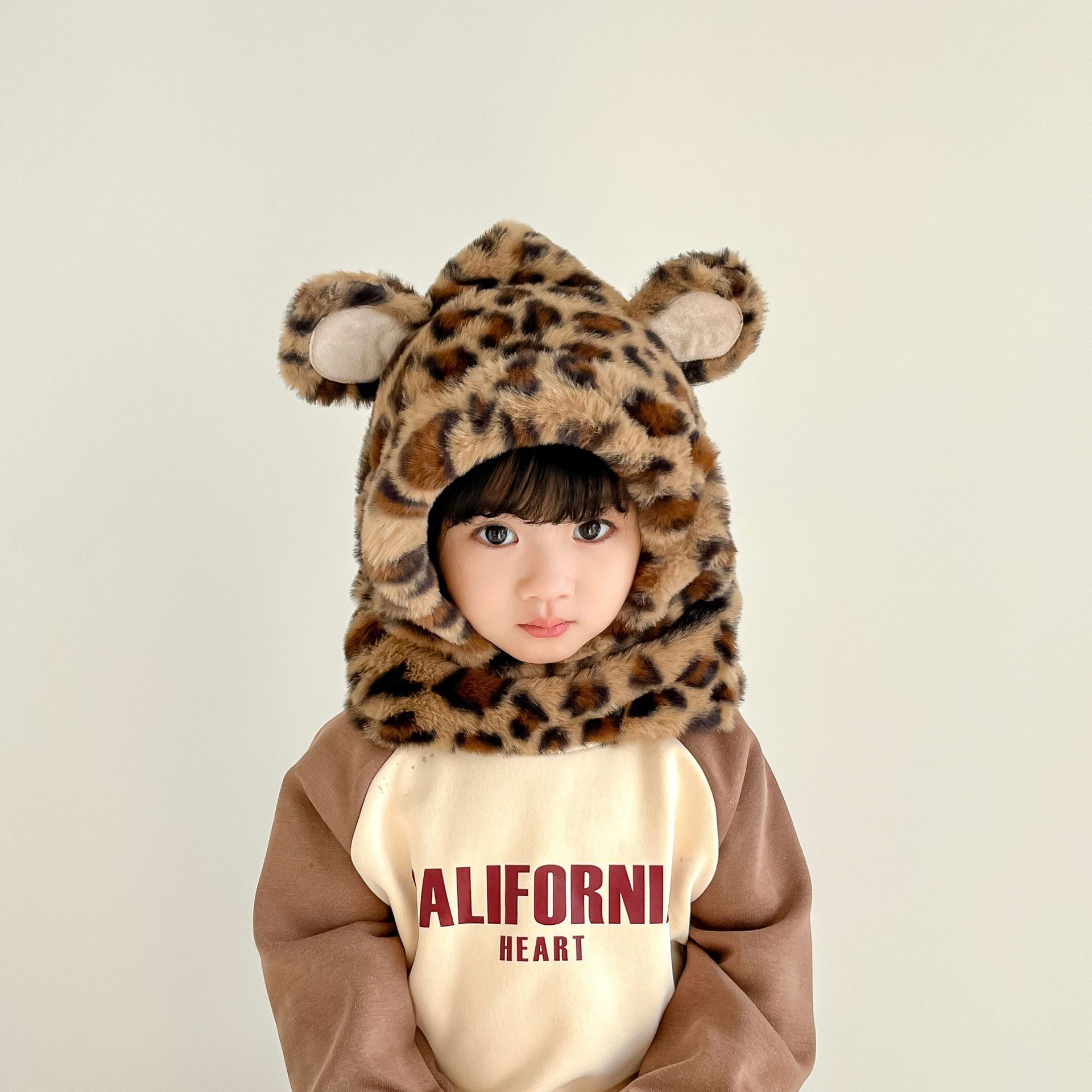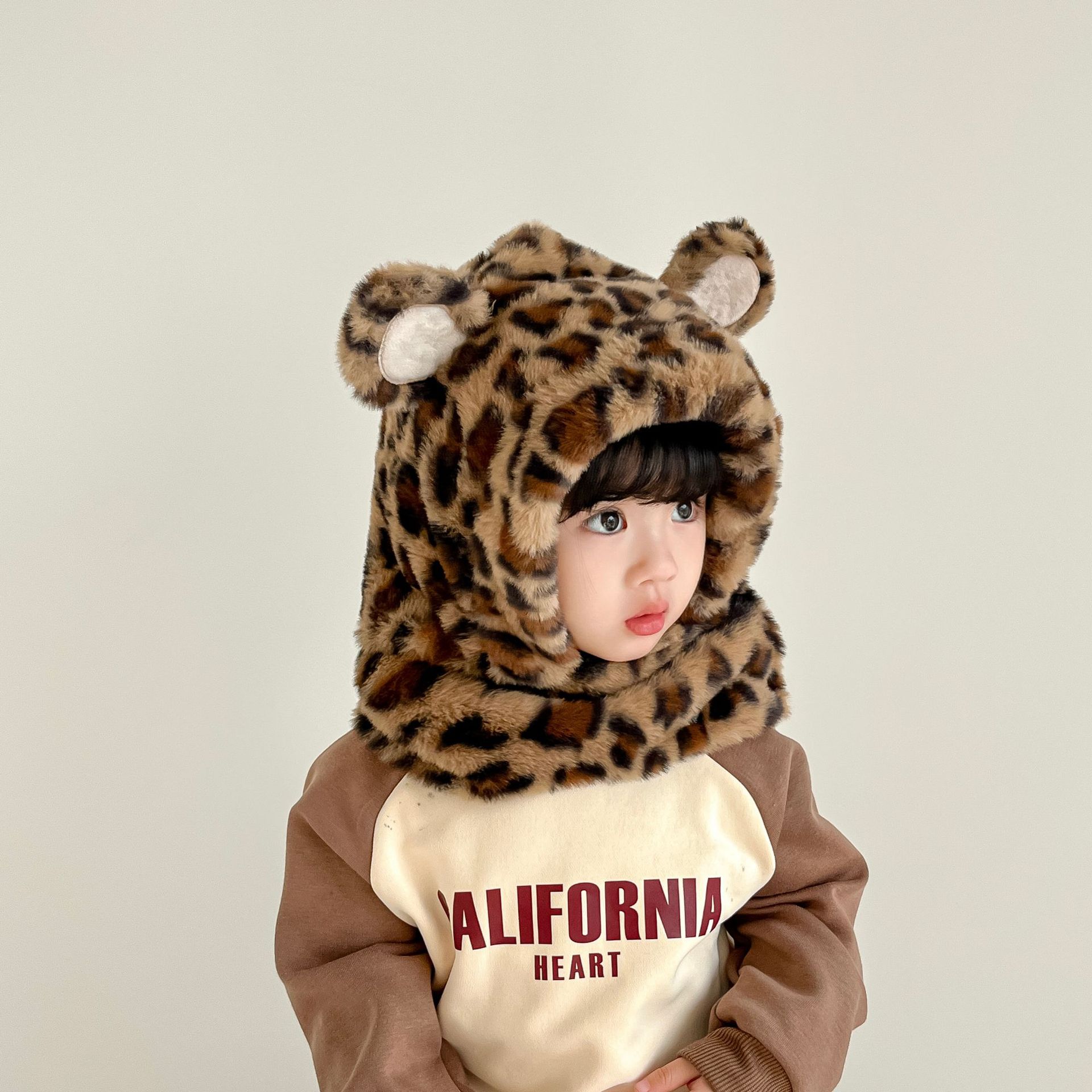 한국 어린이의 부드러운 밀랍 레오파드 무늬 스카프 모자 올인원 따뜻하고 세련된 외국식 베일 플러시 귀 보호 모자 레이 펑 모자스토어 가기