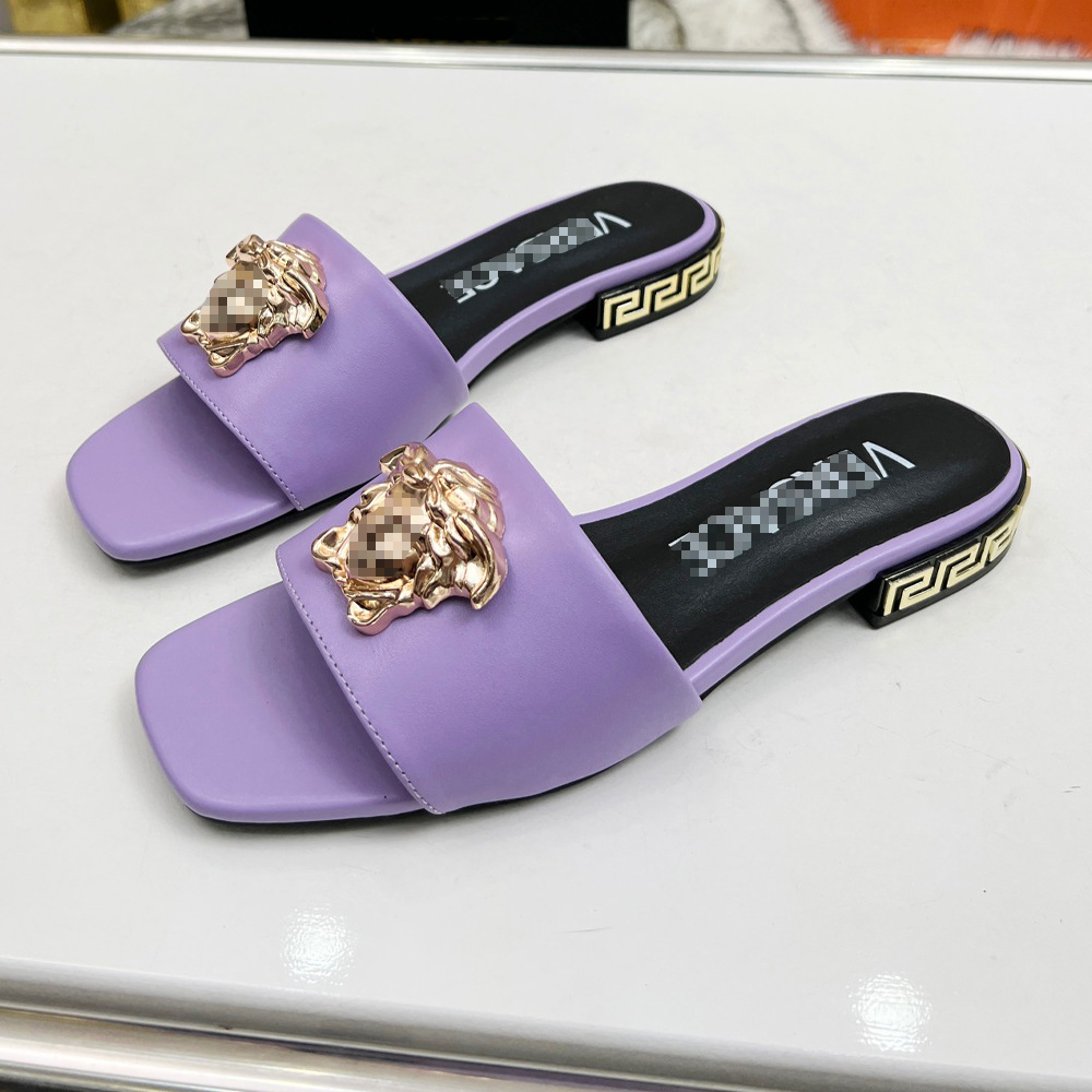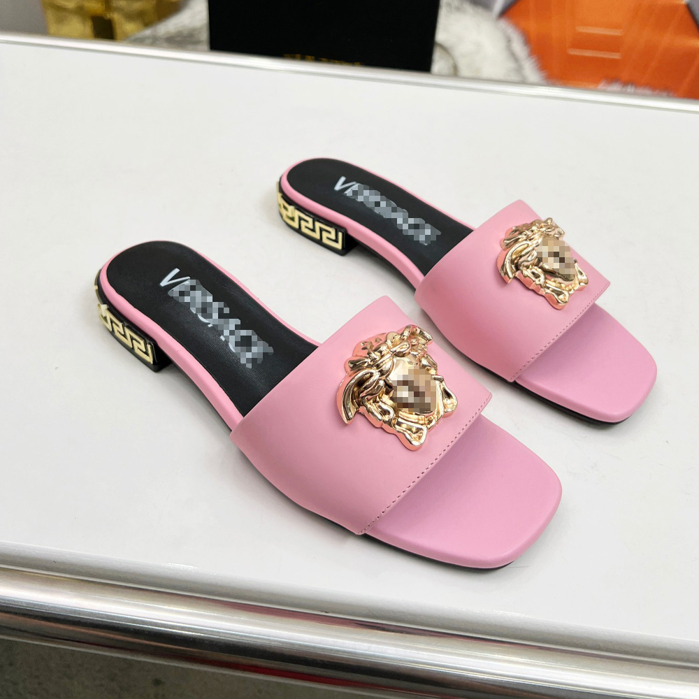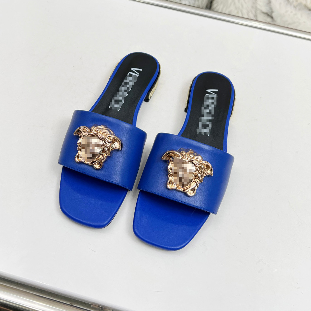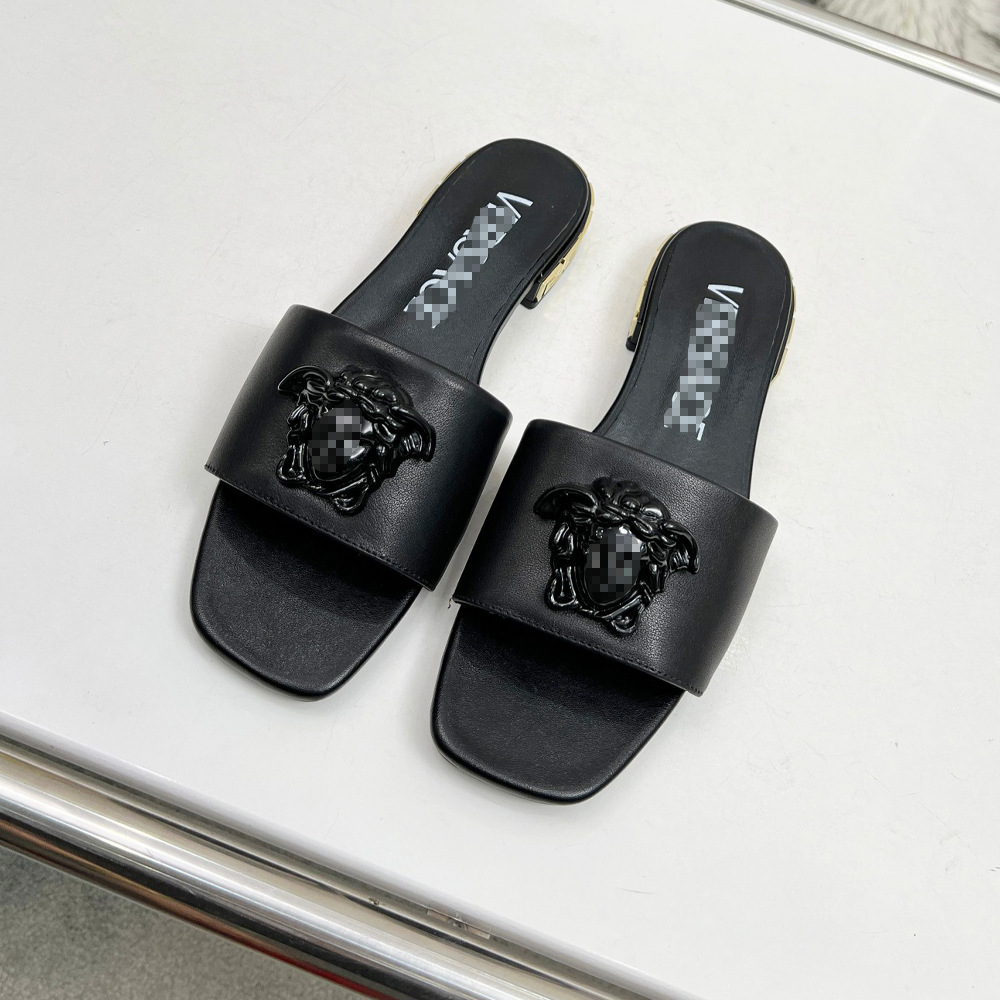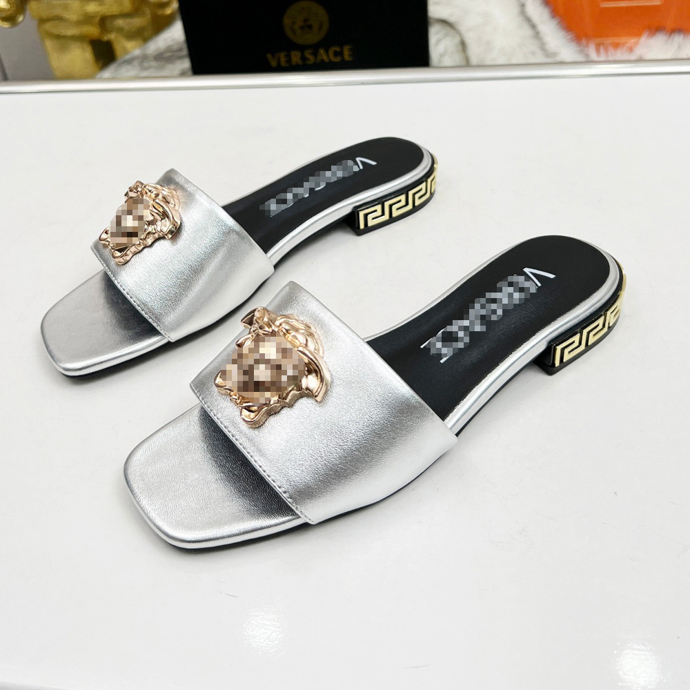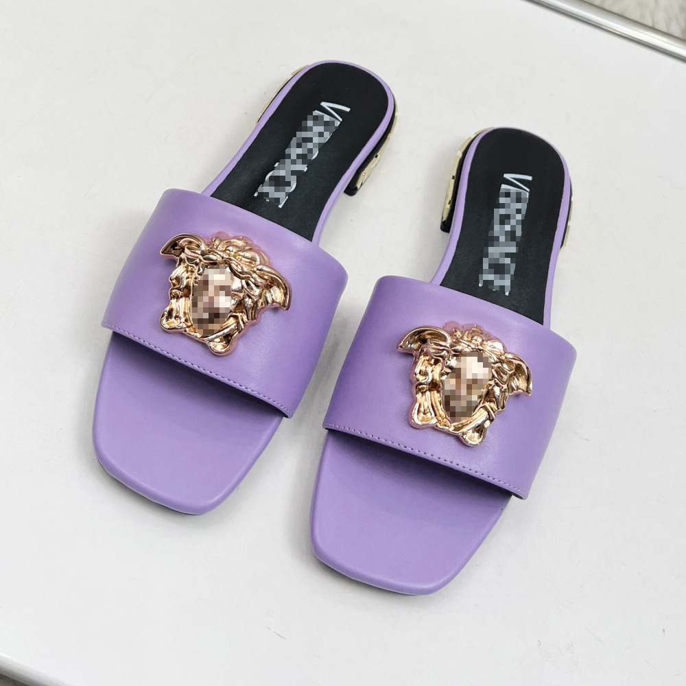 정품 가죽 패션 샌들 2024 새로운 뷰티 헤드 레터 메탈 홀리데이 비치 슬리퍼 유럽, 미국 및 중동 국경 조수스토어 가기