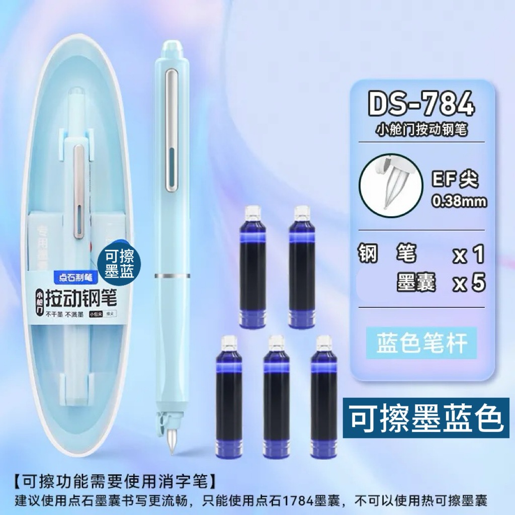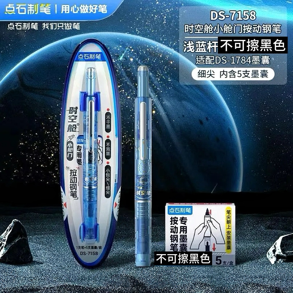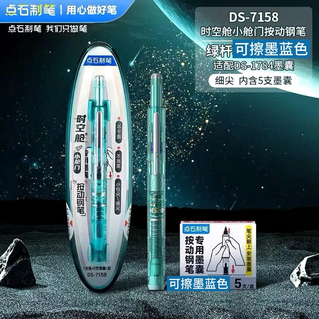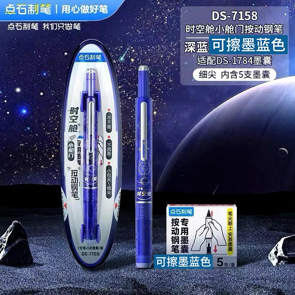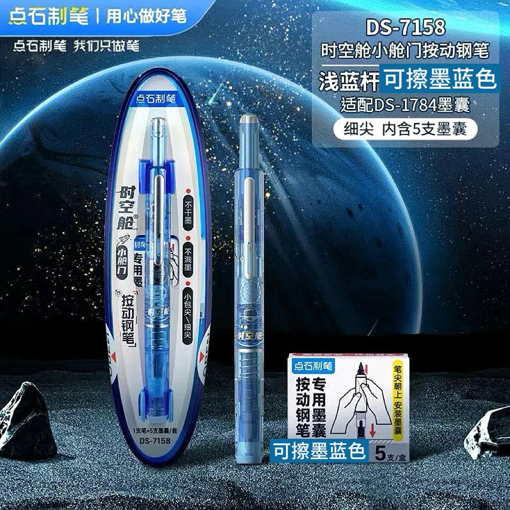 • 진한 파란색 막대-7158 프레스 펜 [지울 수 있는 파란색] 펜 1개 + 잉크 주머니 5개