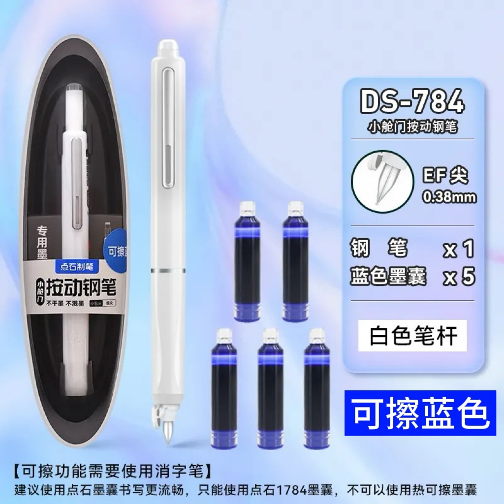 • 흰색 막대 - 784 프레스 펜 [지울 수 있는 파란색] 펜 1개 + 잉크 주머니 5개
