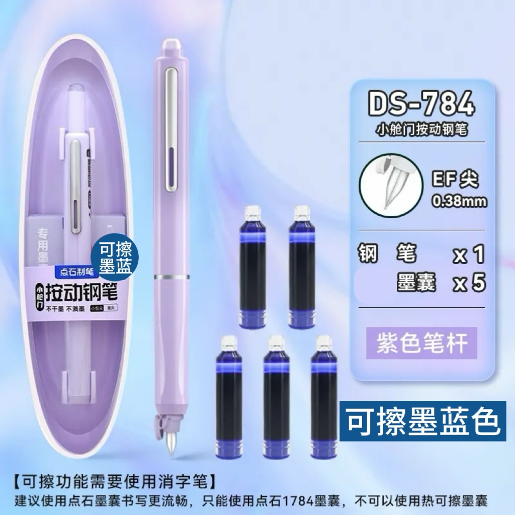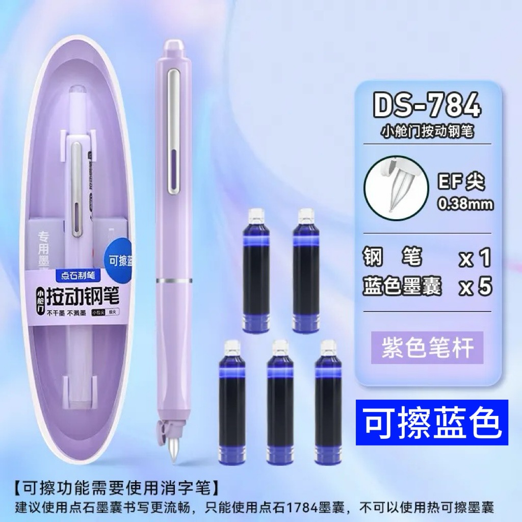 • 보라색 막대 - 784 프레스 펜 [지울 수 있는 잉크 블루] 펜 1개 + 잉크 주머니 5개