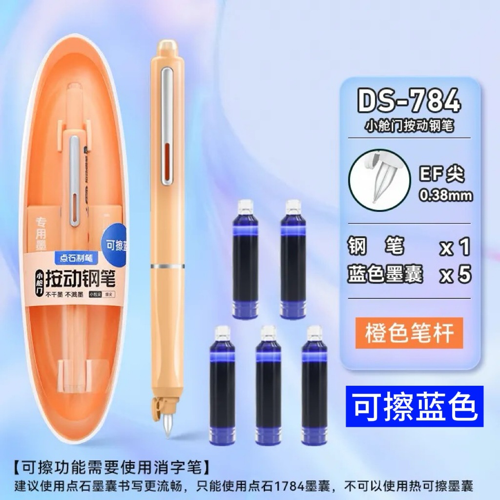 • 주황색 막대 - 784 프레스 펜 [지울 수 있는 잉크 블루] 펜 1개 + 잉크 주머니 5개