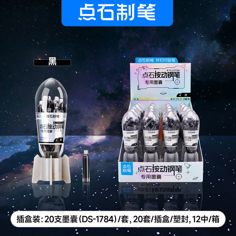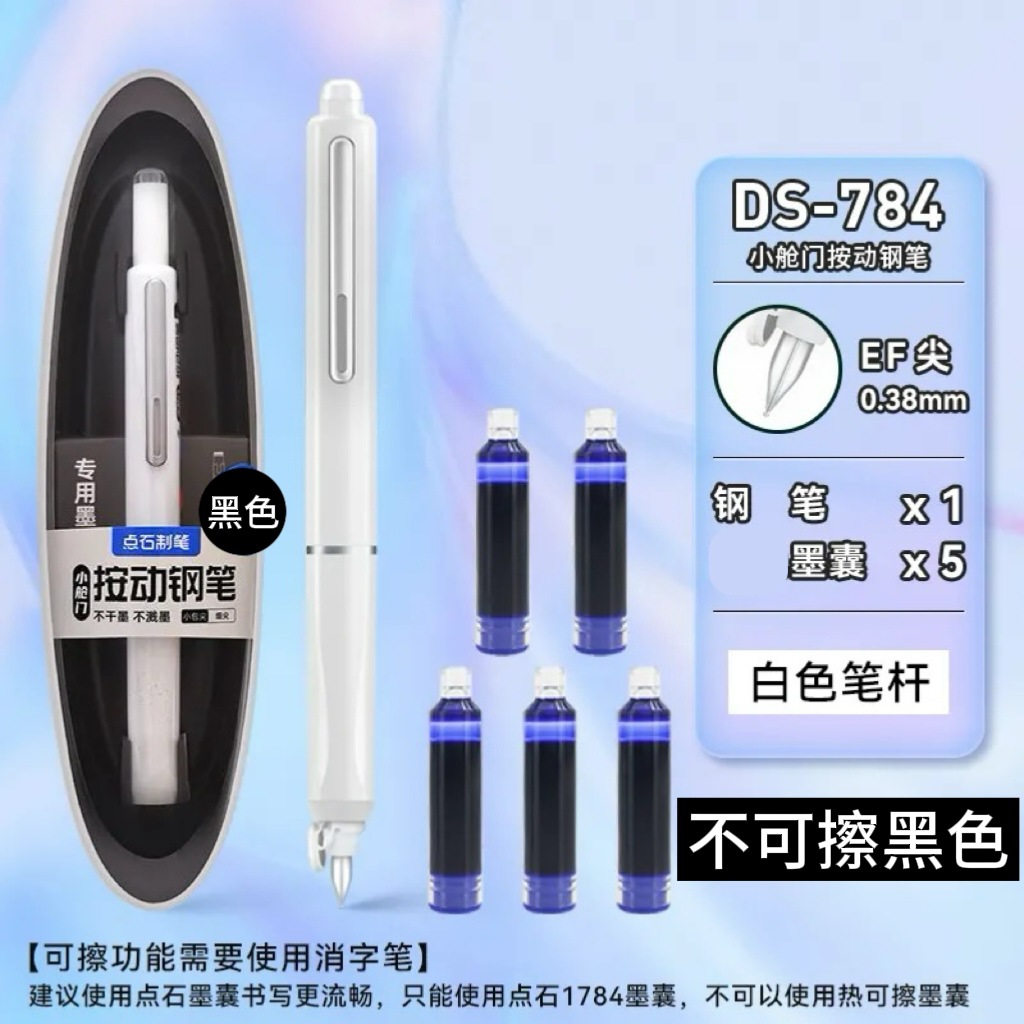• 흰색 막대 - 784 프레스 펜 [지울 수 없는 검정색] 펜 1개 + 잉크 주머니 5개