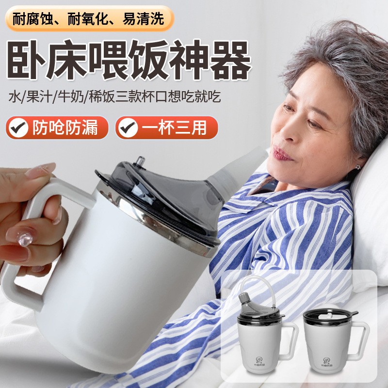 노인을위한 질식 방지 케어 컵 흡입 컵 노인을위한 특별 물컵 침대 옆에 누워있는 마비 누출 방지 열 보존 액체 식품 컵스토어 가기