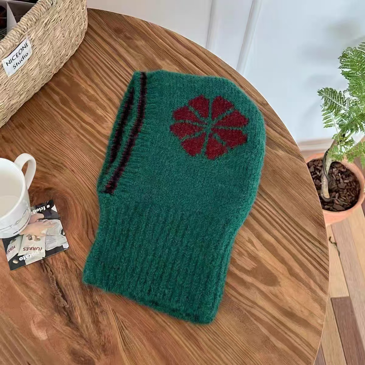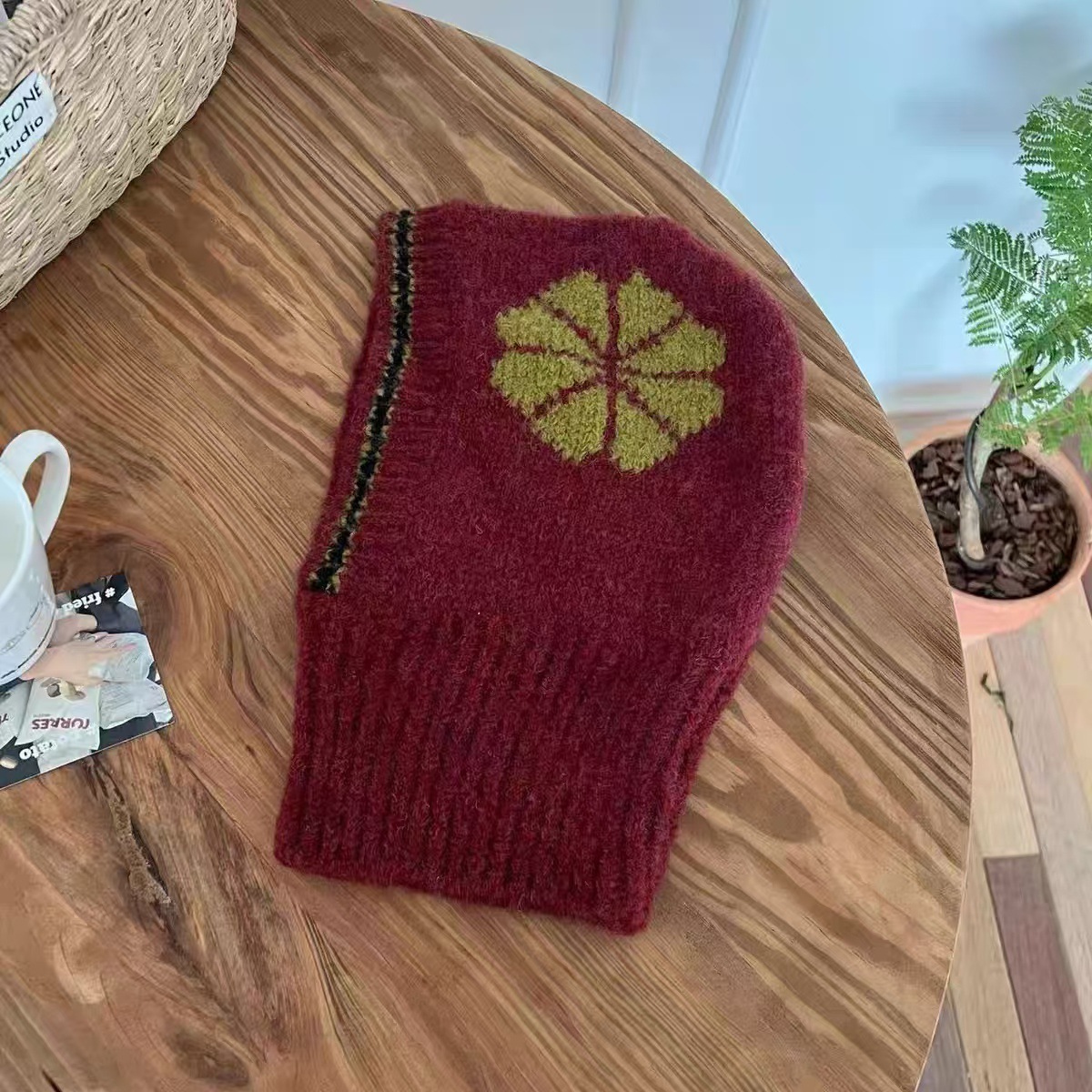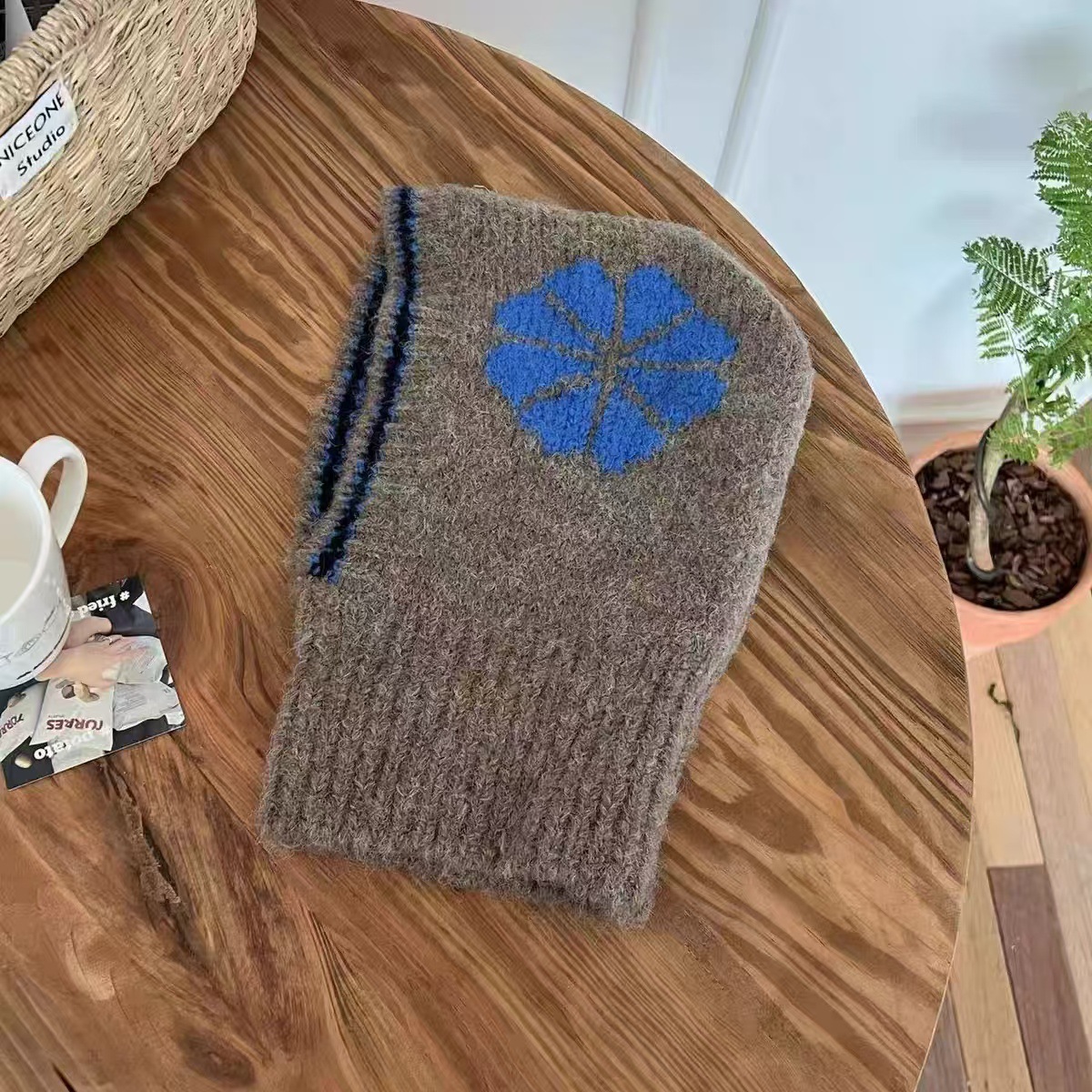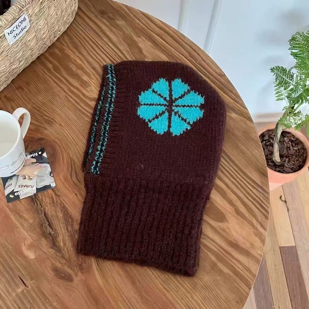 韩版ins 儿童拉法帽时尚花朵针织帽冬季保暖毛线帽围脖护耳一体帽