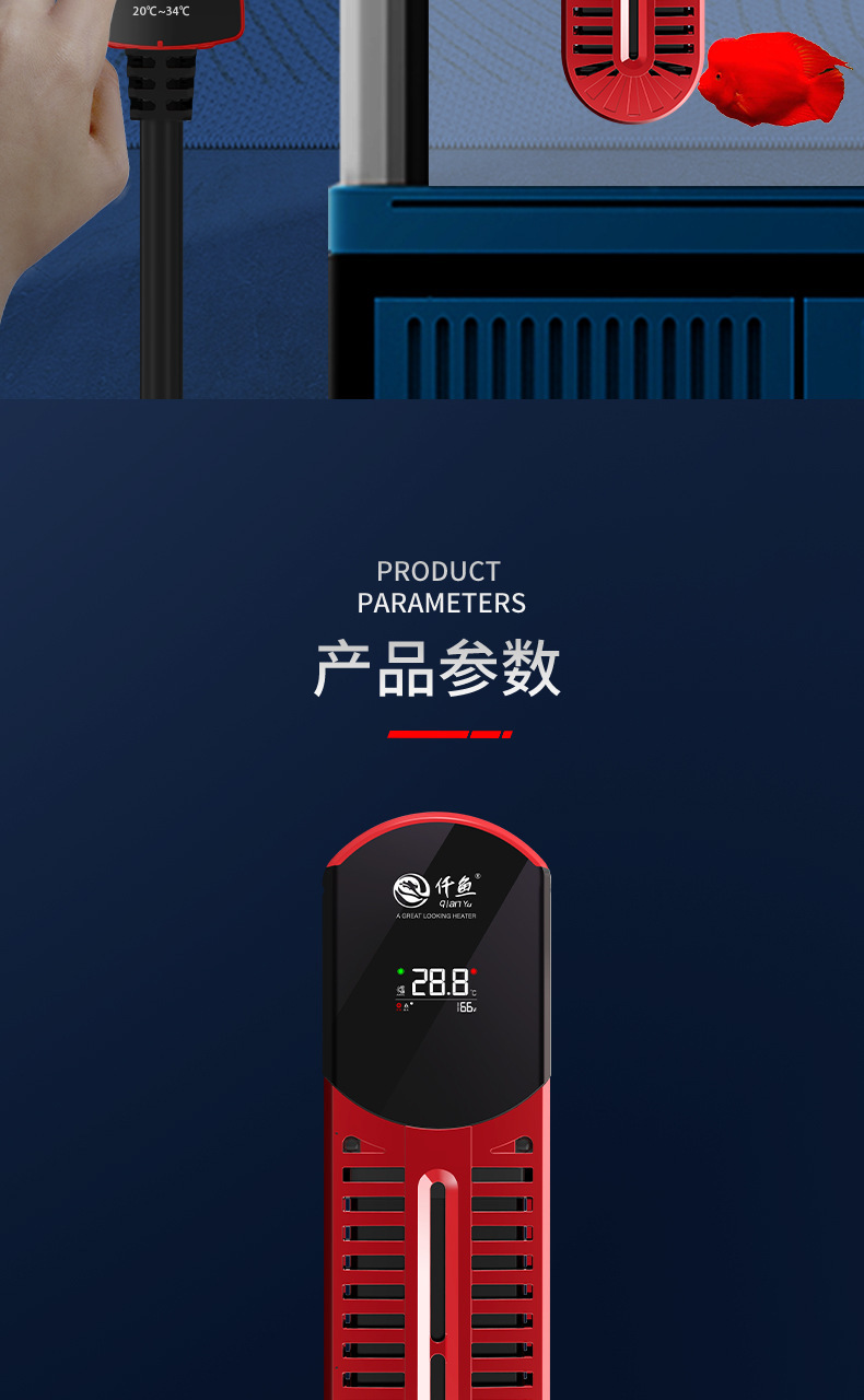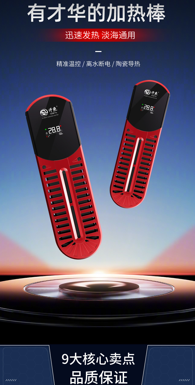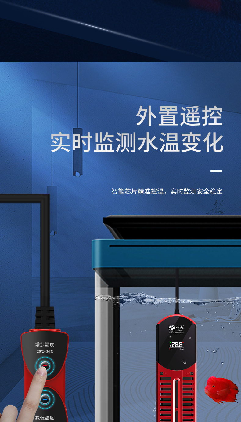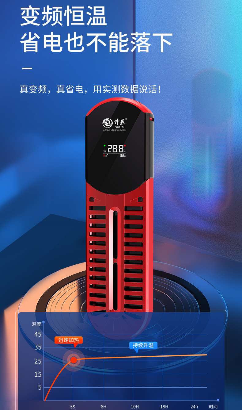 Qianyu Symphony 가변 주파수 가열 막대 지능형 가열 장치 수족관 물고기 탱크 가열 막대 물에서 전원 끄기 전원 표시