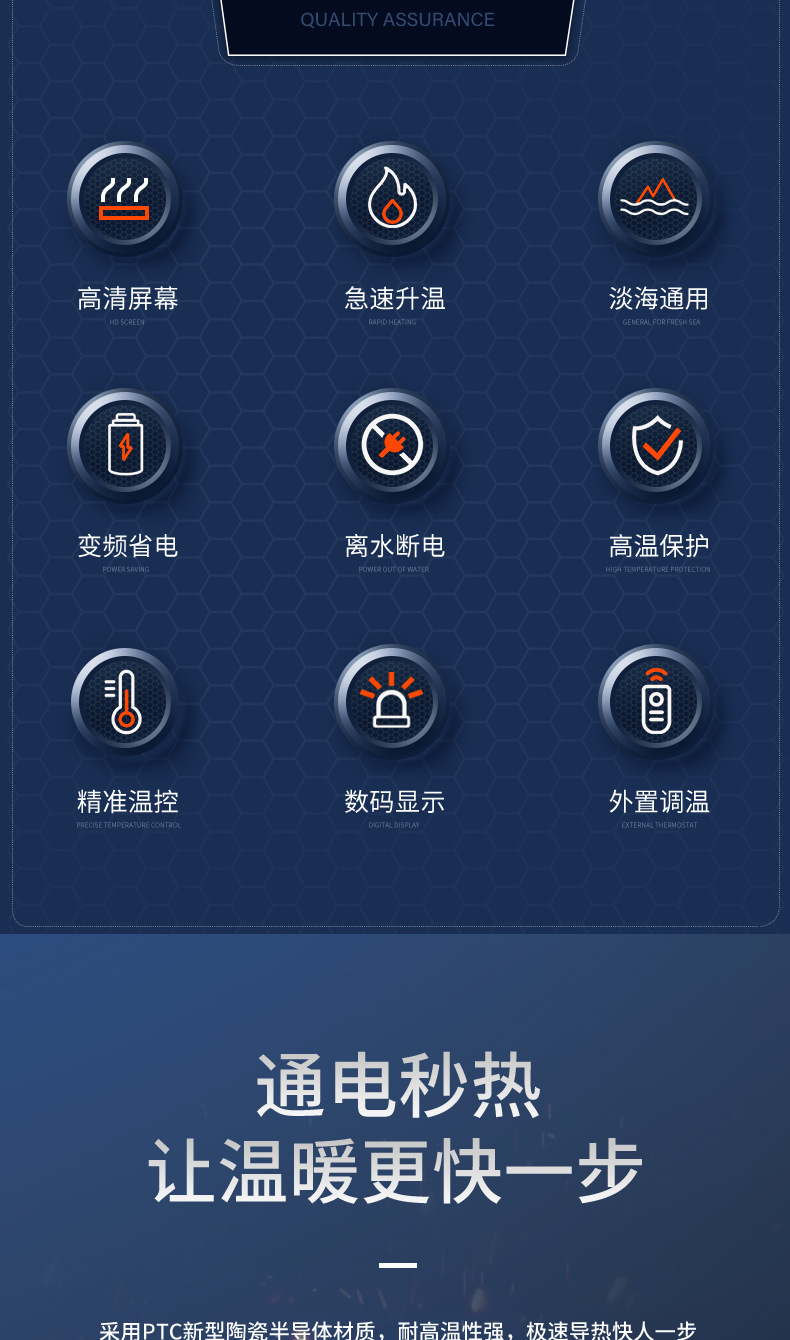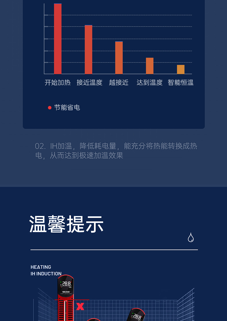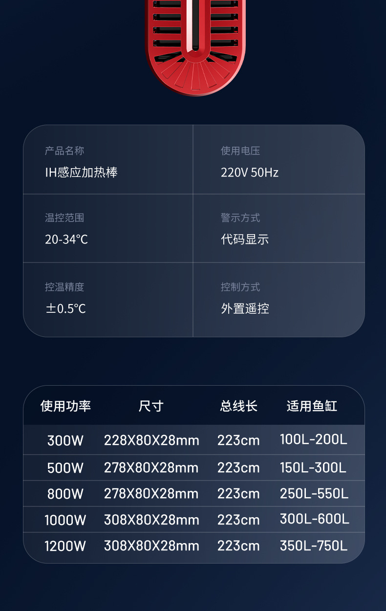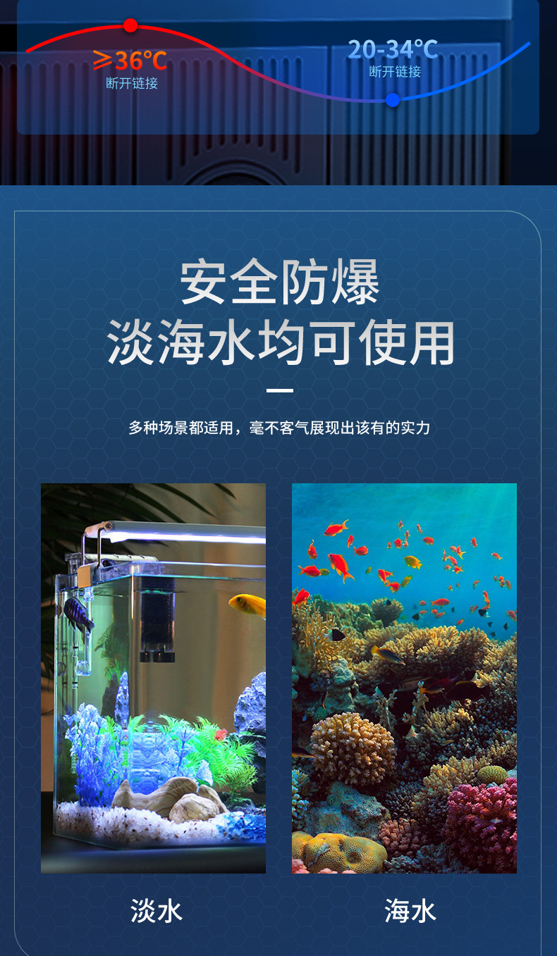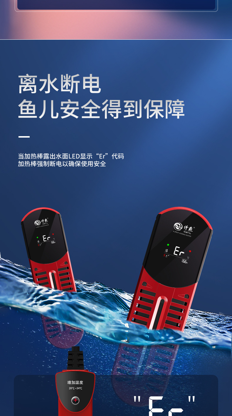 Qianyu Symphony 가변 주파수 가열 막대 지능형 가열 장치 수족관 물고기 탱크 가열 막대 물에서 전원 끄기 전원 표시