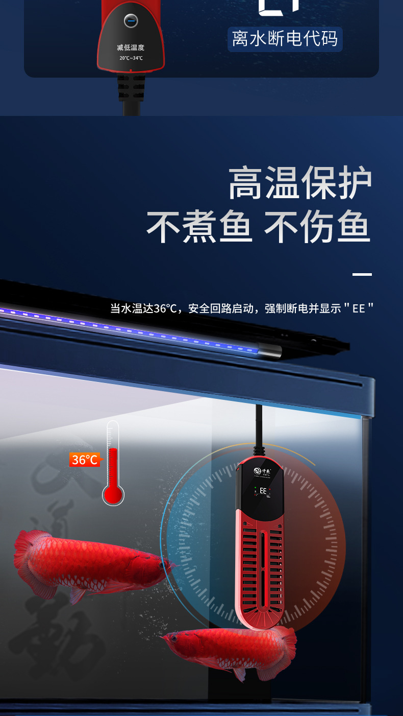 Qianyu Symphony 가변 주파수 가열 막대 지능형 가열 장치 수족관 물고기 탱크 가열 막대 물에서 전원 끄기 전원 표시스토어 가기