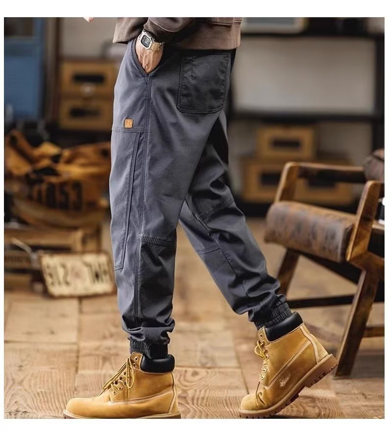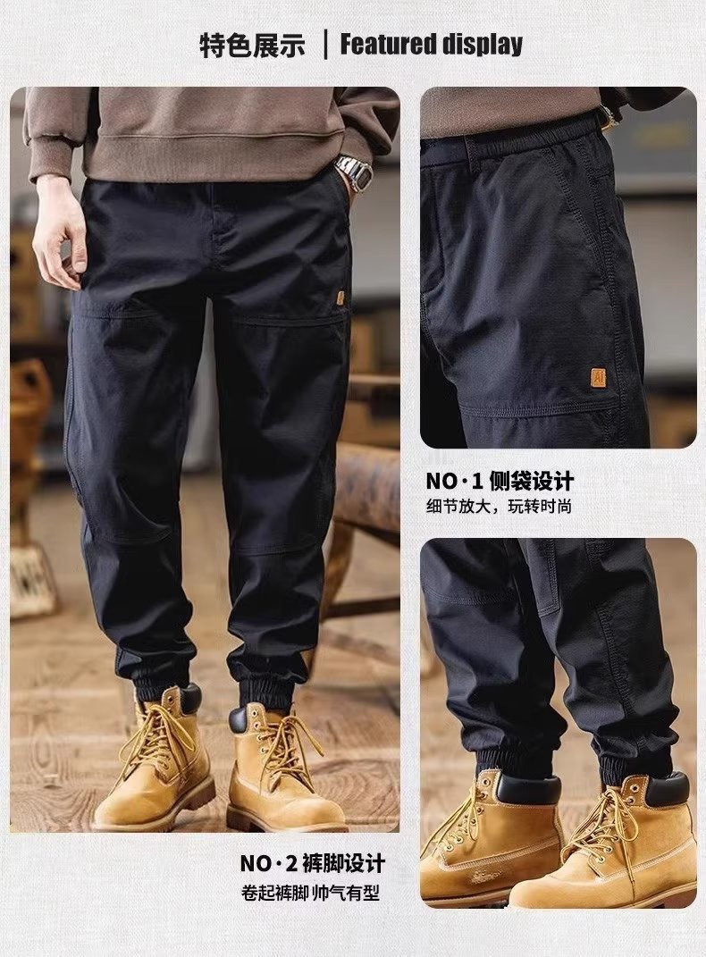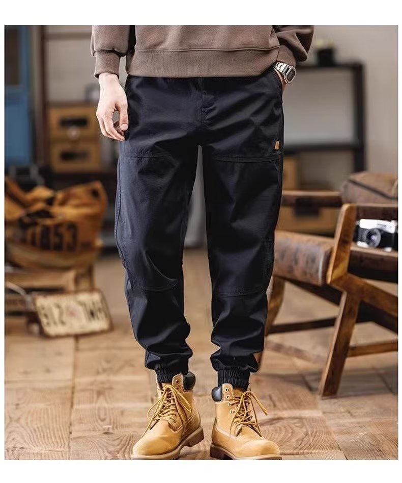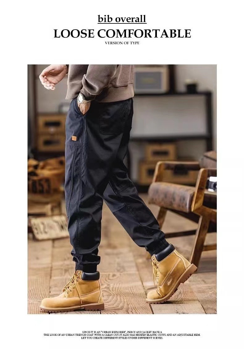 아메리칸 스타일 오버홀 남자 여름 솔리드 컬러 올 매치 캐주얼 바지 루즈 충전 바지 남성 트렌디 브랜드 미드 웨이스트 바지스토어 가기