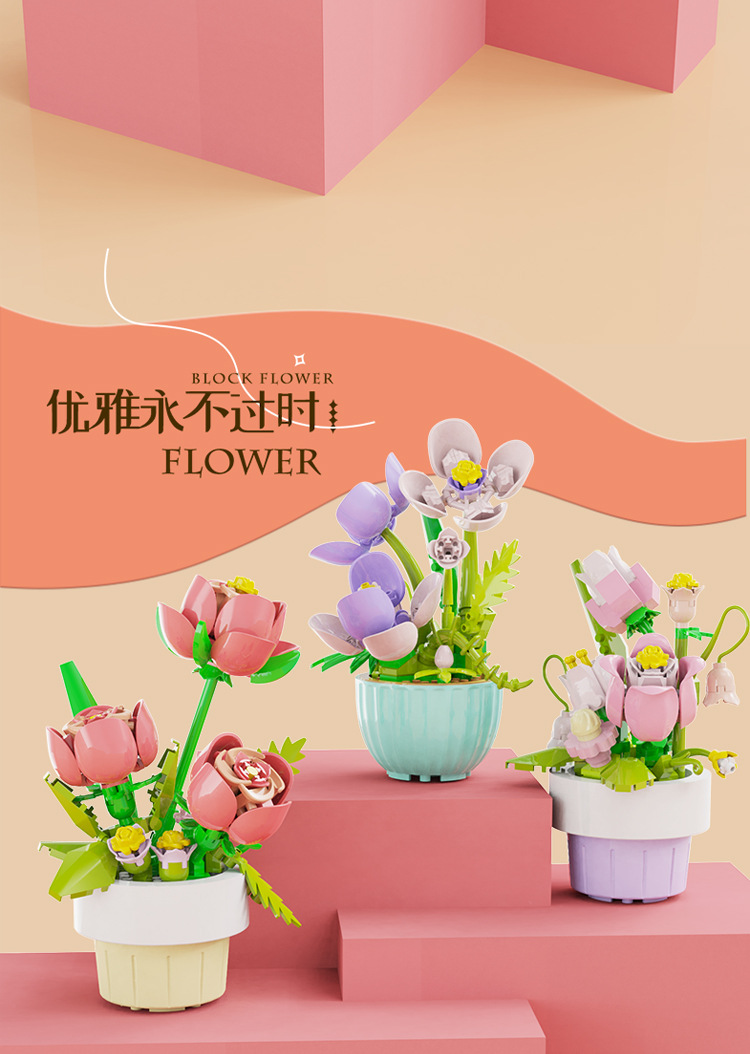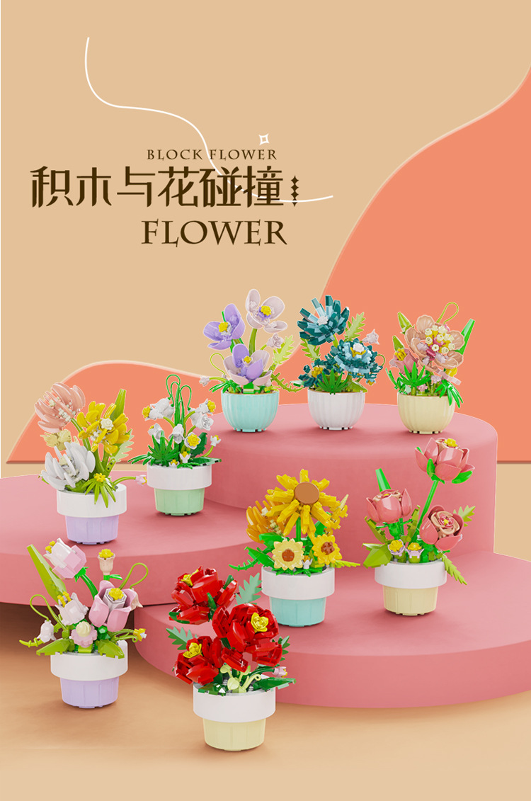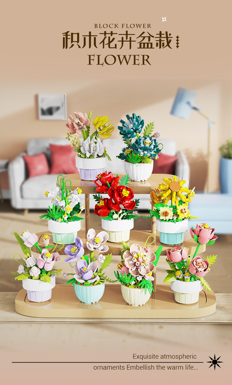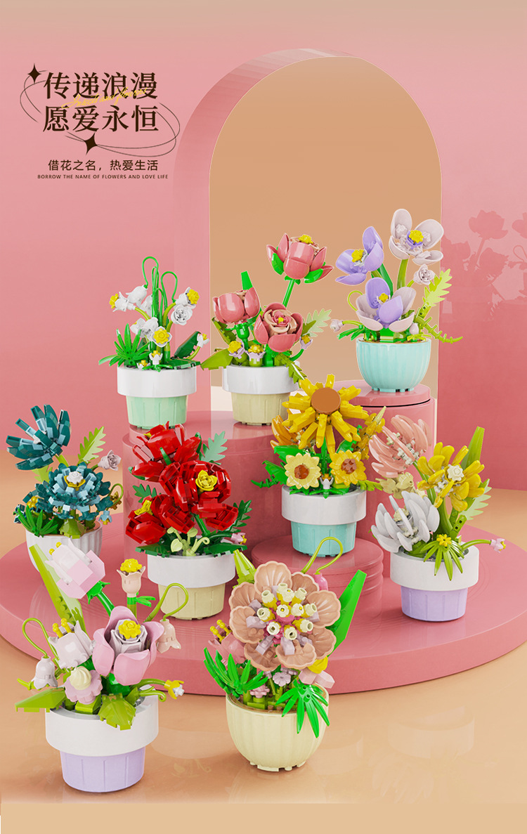 [도매 세대] 화분에 심은 빌딩 블록 조립 마이크로 입자 장난감 다육 영원한 꽃 크리스마스 호환 레고 장식품스토어 가기