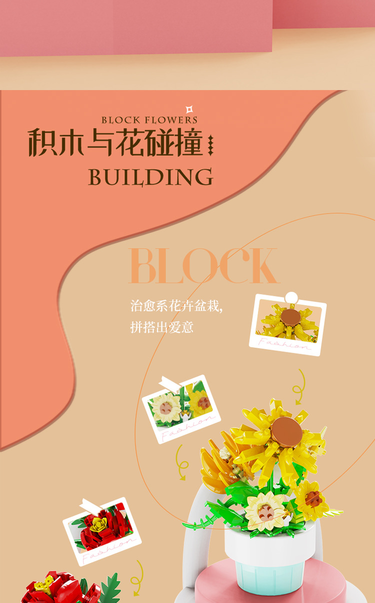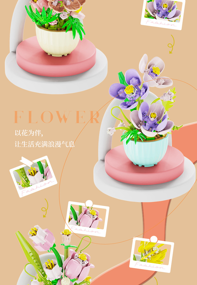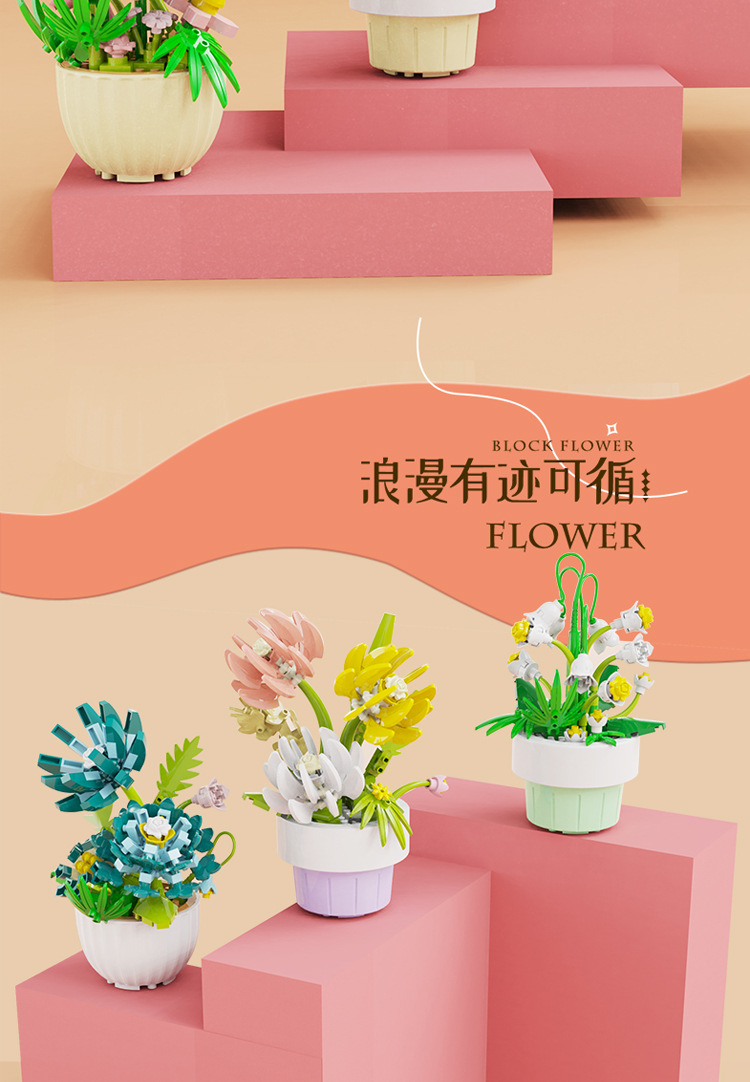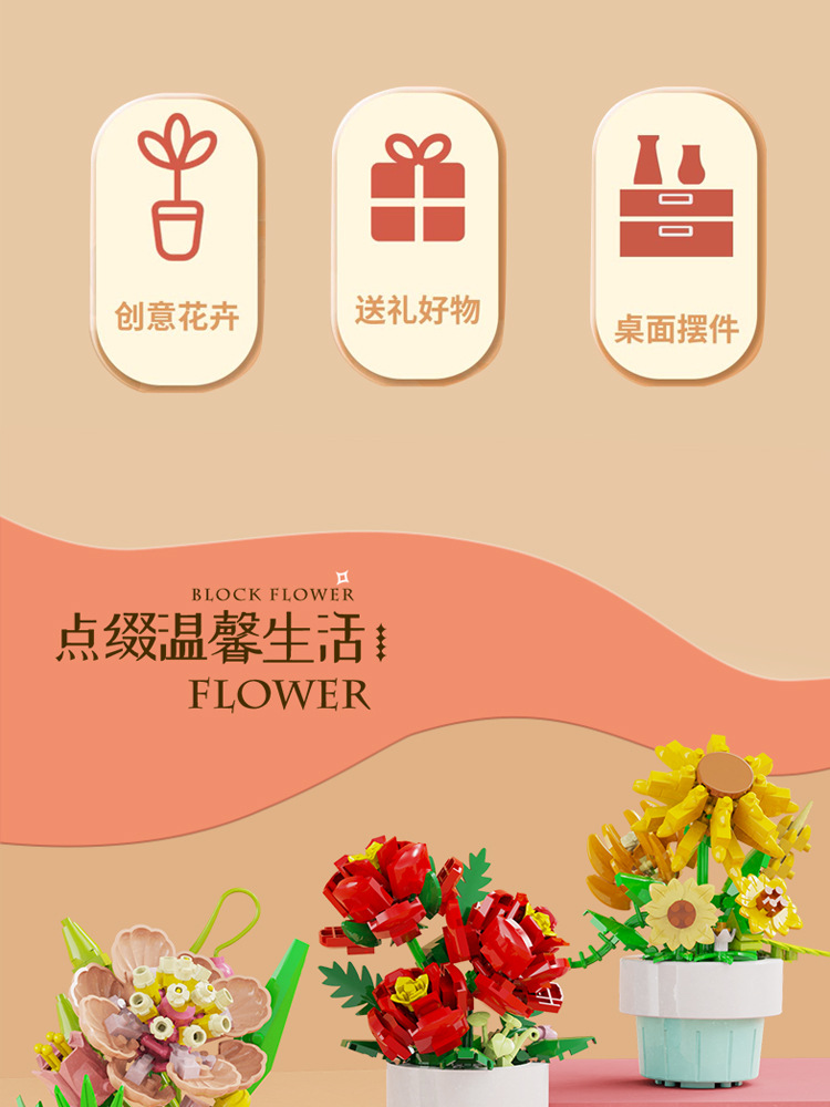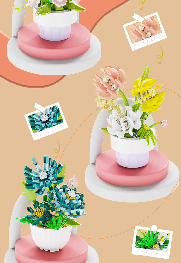 [도매 세대] 화분에 심은 빌딩 블록 조립 마이크로 입자 장난감 다육 영원한 꽃 크리스마스 호환 레고 장식품스토어 가기