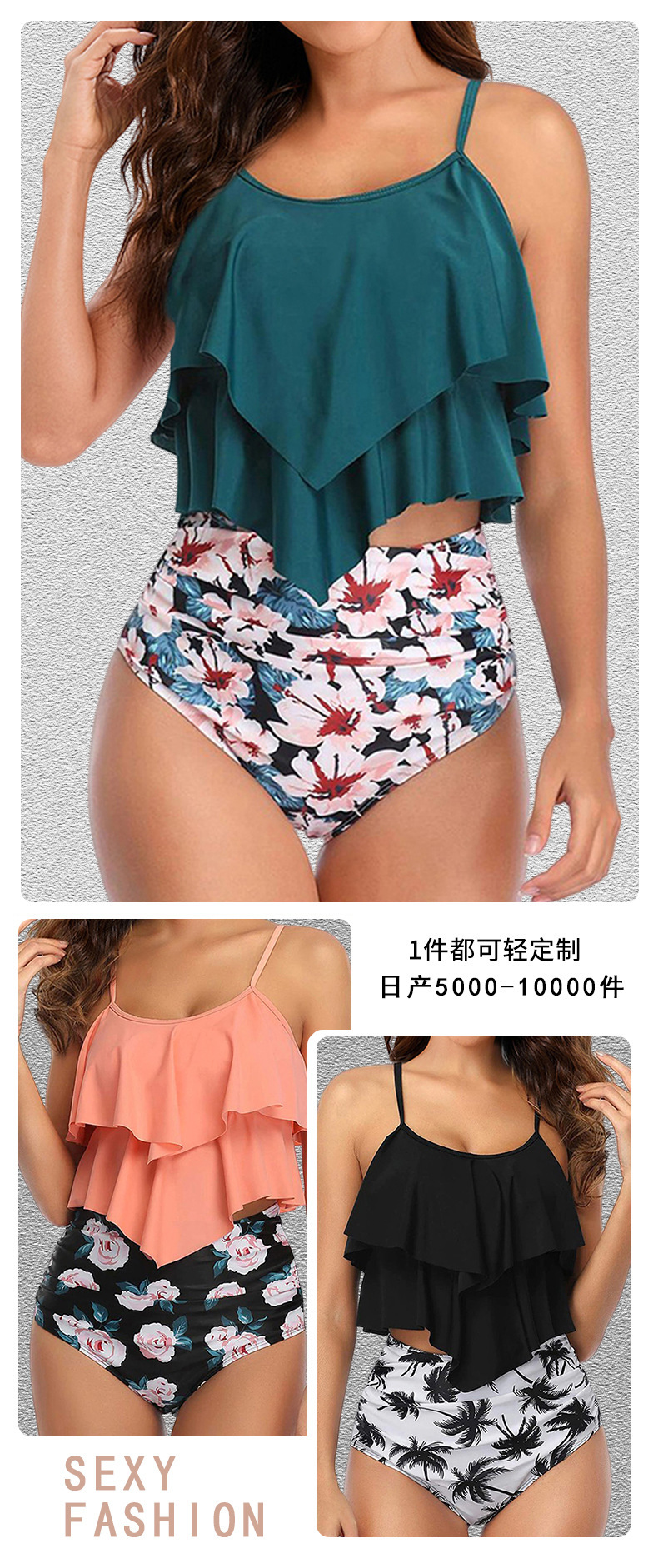 2024 유럽과 미국에 새로운 수출 아마존 수영복 여성 보수 연꽃 잎 분할 수영복 비키니 비키니