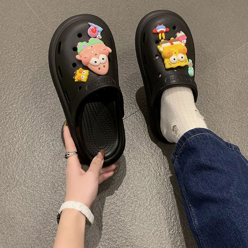 신발 여성 여름 새로운 귀여운 만화 의류 유행 홈 미끄럼 방지 두꺼운 단독 2-착용 샌들