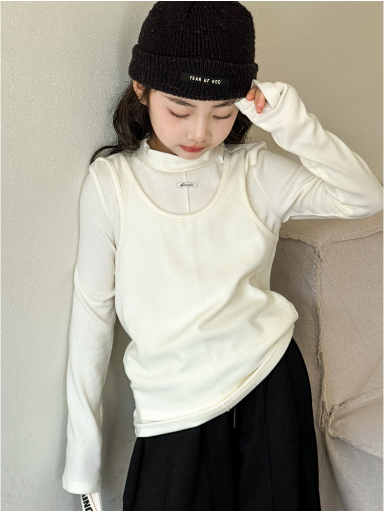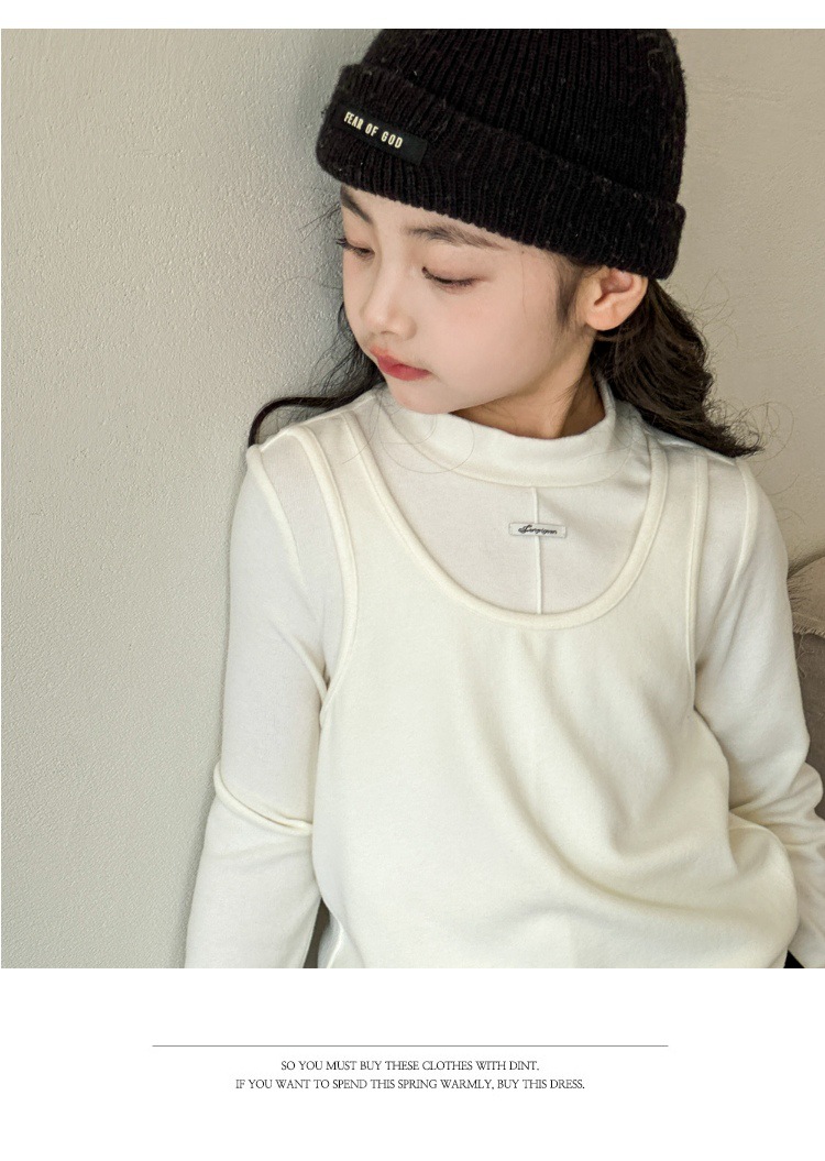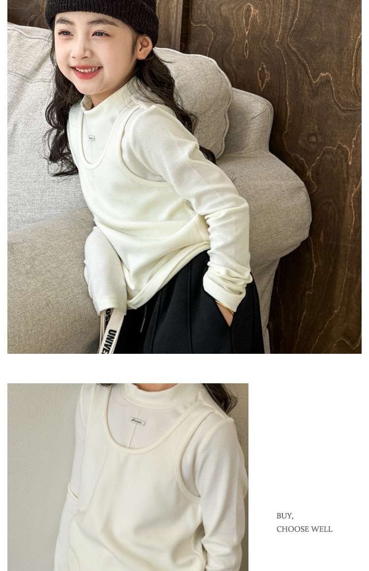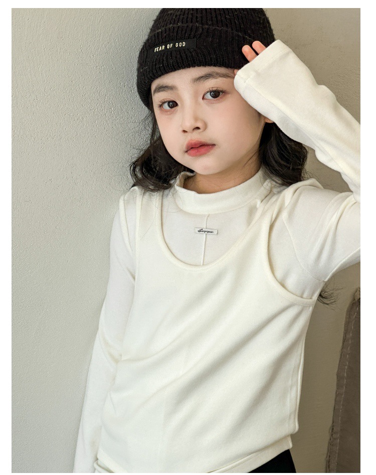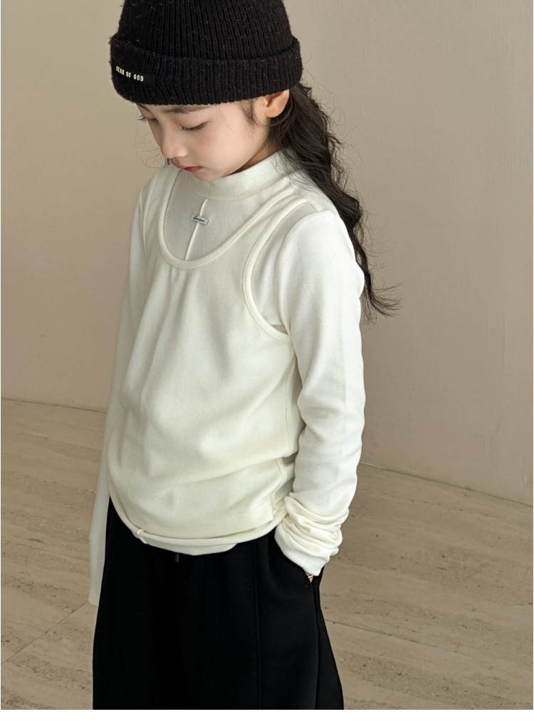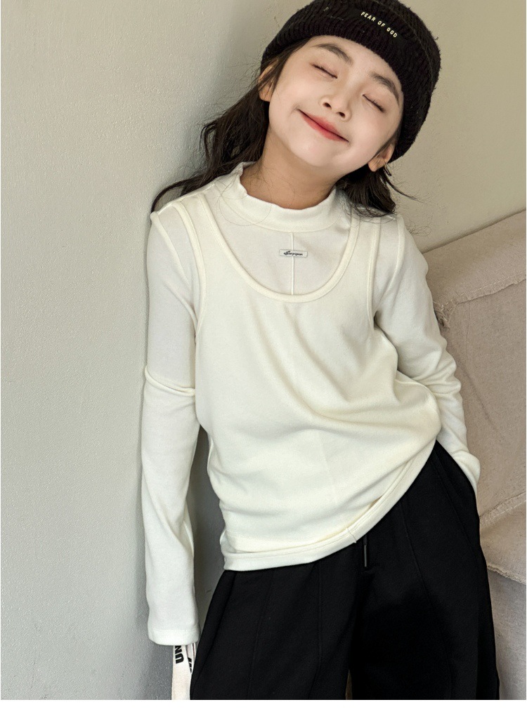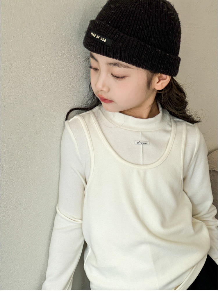 여자 반높이 칼라 벨벳베이스 셔츠 가을과 겨울 어린이 긴팔 티셔츠 겨울소녀 가짜 투피스 내탑스토어 가기